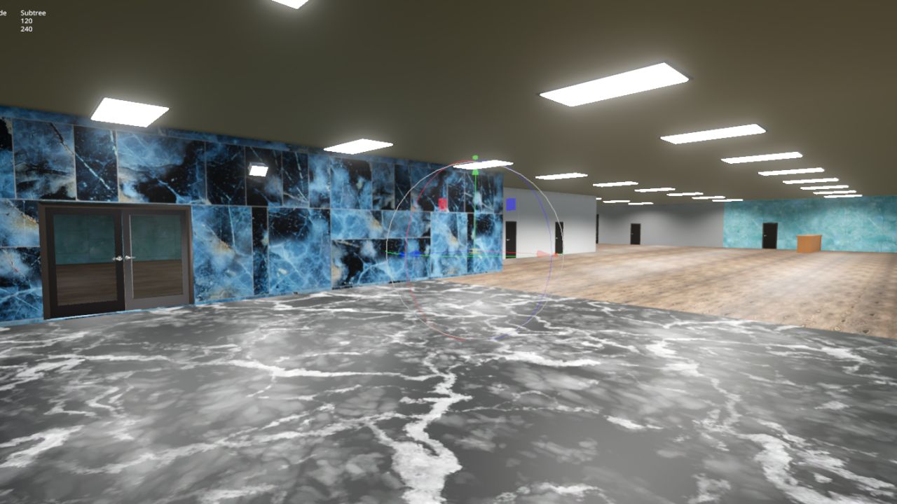 Car Showroom off the living room w/ floor to floor-to-ceiling bay windows