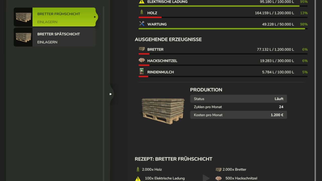 A production that covers the increased demand of the NF March productions and also produces products from the FED productions. Therefore, the FED production pack is also registered as a dependency. There is an early and late shift for boards, so a maximum of 4,000 boards can be produced per cycle, with 24 cycles per month
