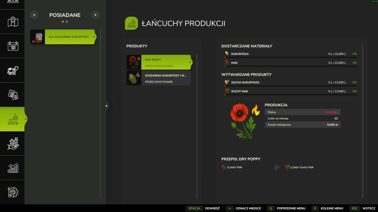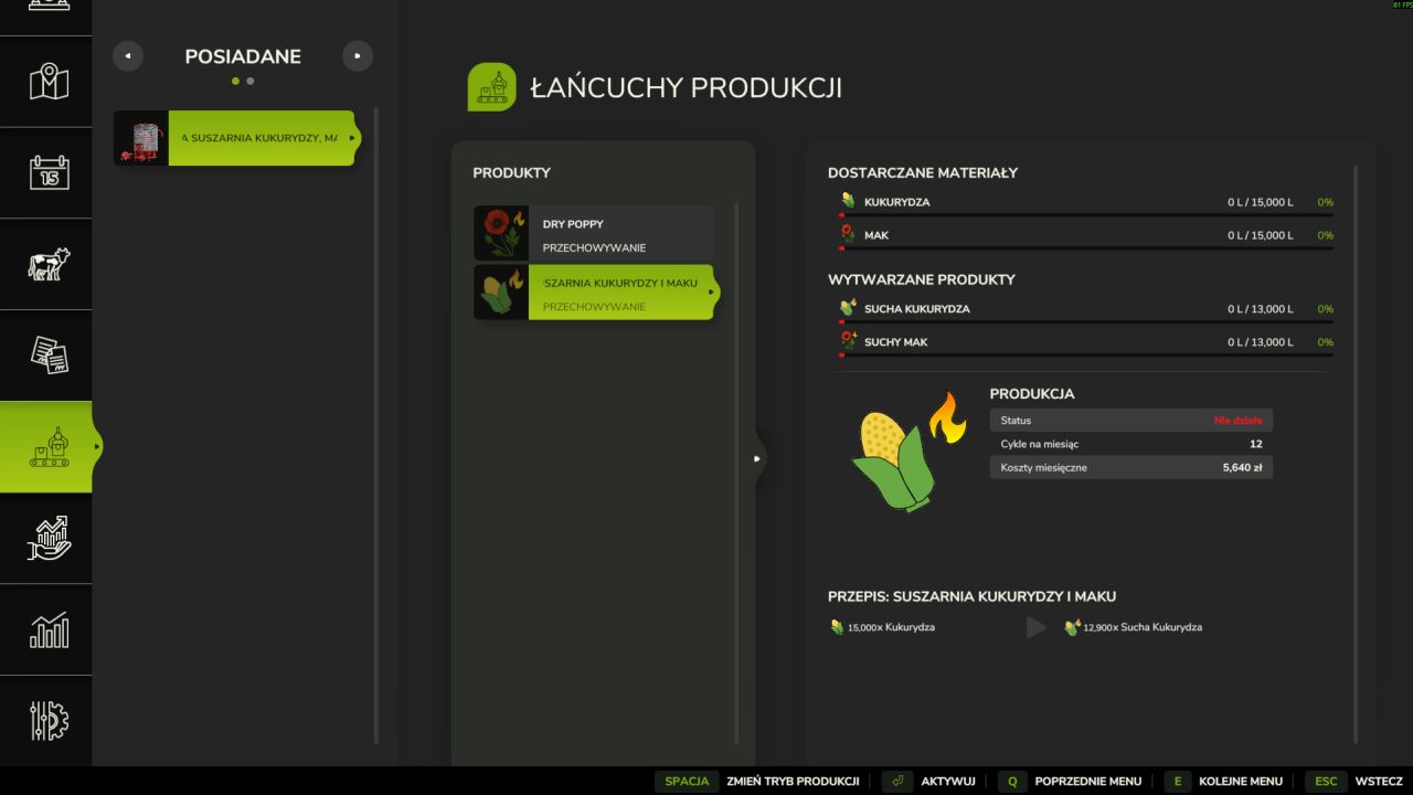 Possibility to dry corn and sell dry corn in the stores existing in the game at a higher price than corn from the field