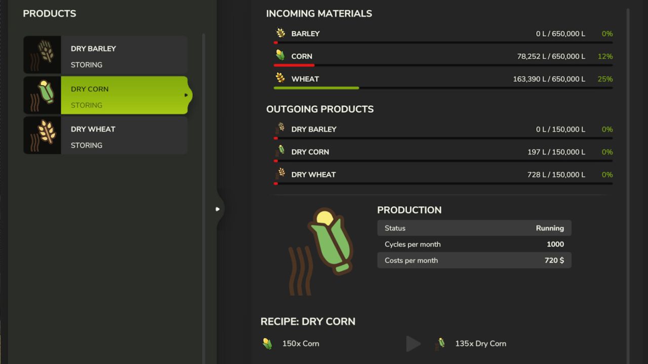 Outputs: Dry Corn, Dry Wheat, Dry Barley