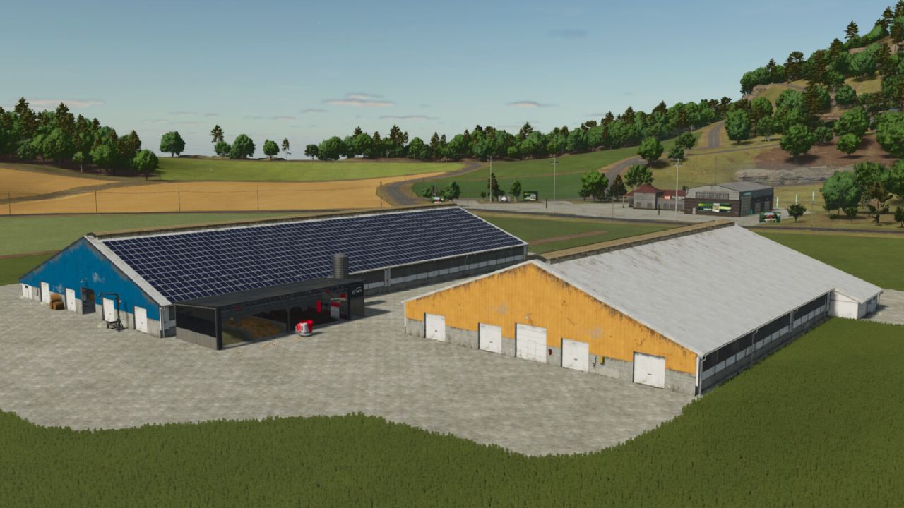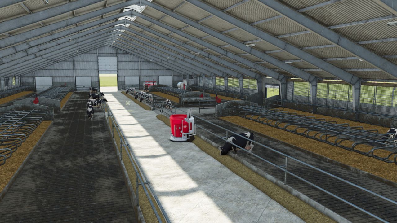 Cow barns with small outside pastures. 2 size variants and both has also variant with feeding robot and variants without pasture, 8 placeables in this pack in total.