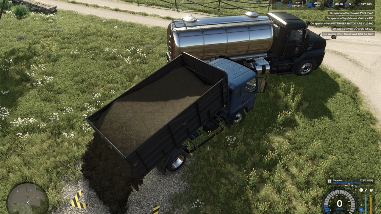 Also you can bring liquid fertilizer (but in a tanker, because it doesn’t accept that kind of pallet) instead of solid fertilizer or instead of manure you can bring either liquid manure, digestate or compost.