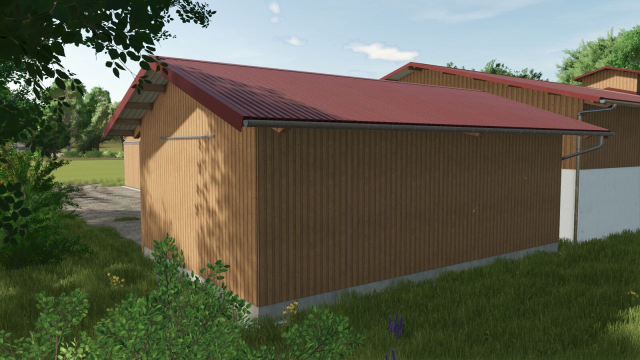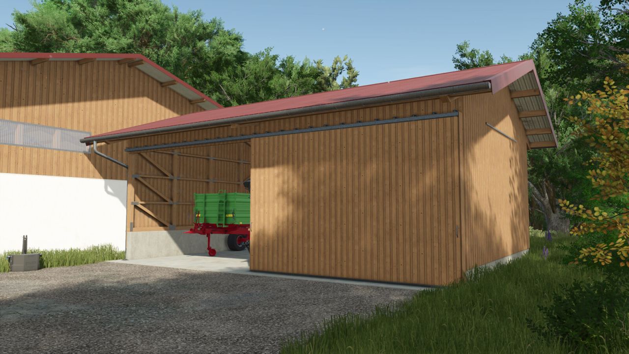 A small, quite new hall for storing machinery, bales, pallets or bulk materials.