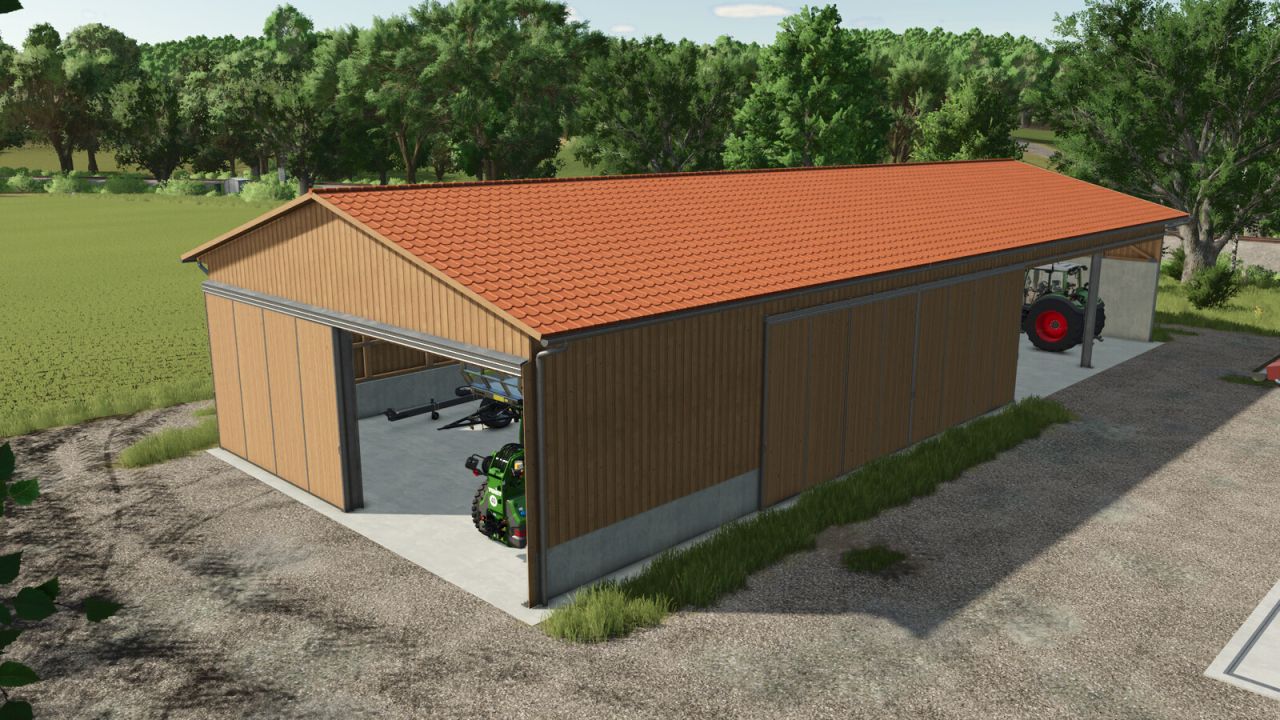 A storage hall for storing bulk materials and bales as well as machines and vehicles