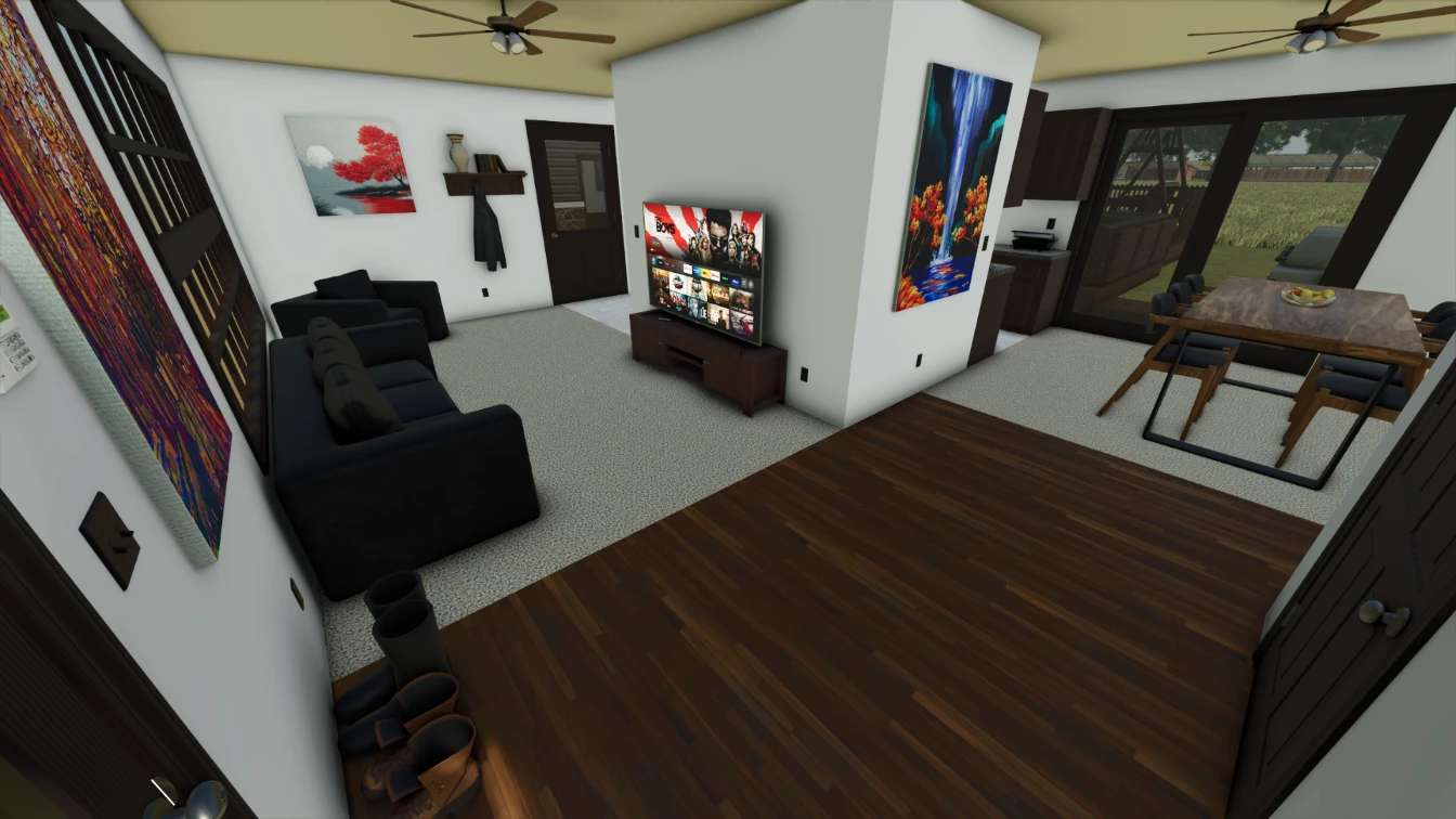 This is a detailed Farmhouse with Sleep and Wardrobe functions. This house contains 3 bedrooms and 2 full bathrooms along with a detached garage and a large back deck. Also the firepit out back is functional using a nearby trigger. Now available with color selectable options.
