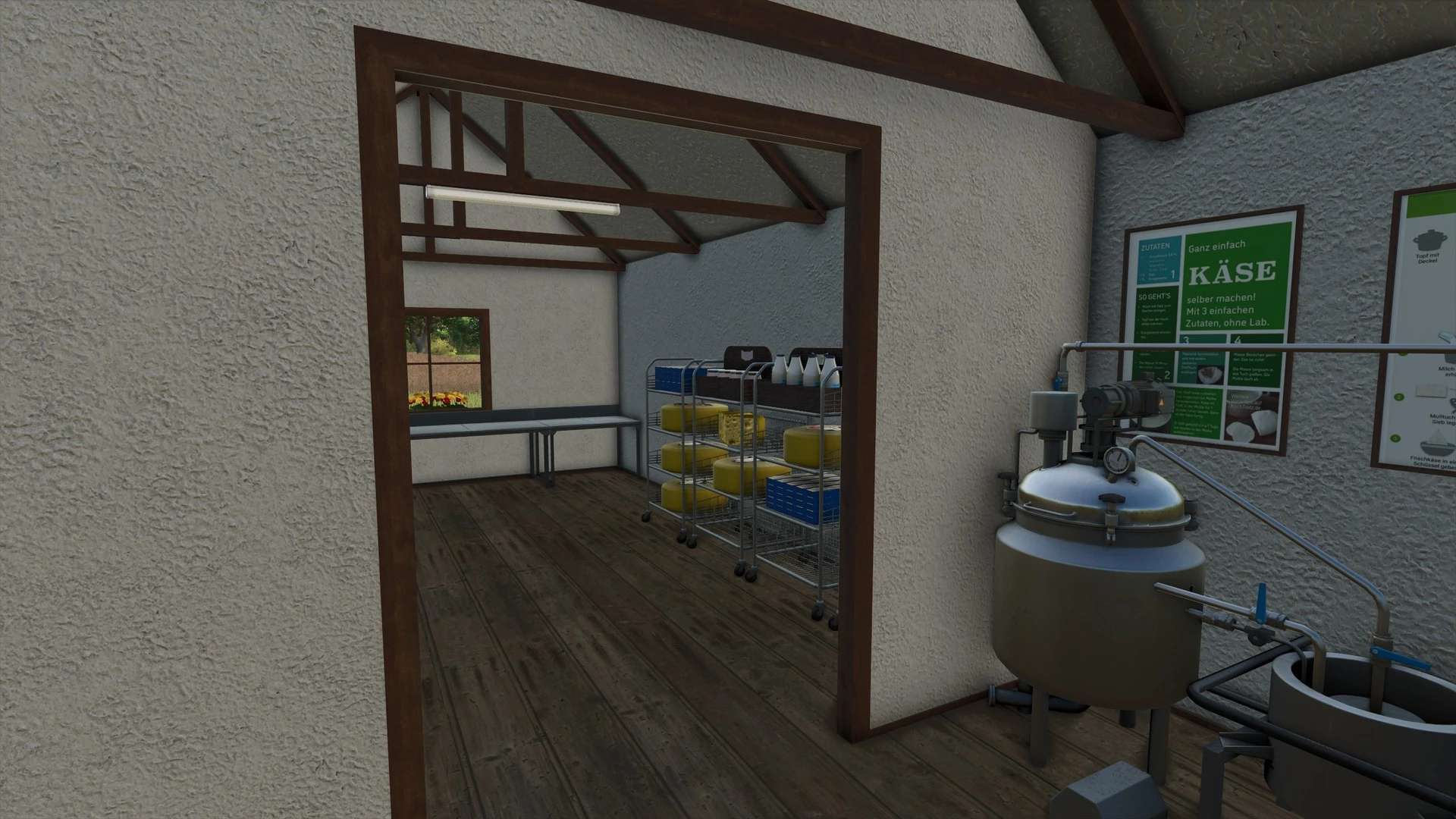 A small, artisanal cheese factory with a focus on micromanagement. Production relies on small pallets that are compact enough to be carried by hand. This maintains the character of a small-scale farm production – no large industrial pallets.