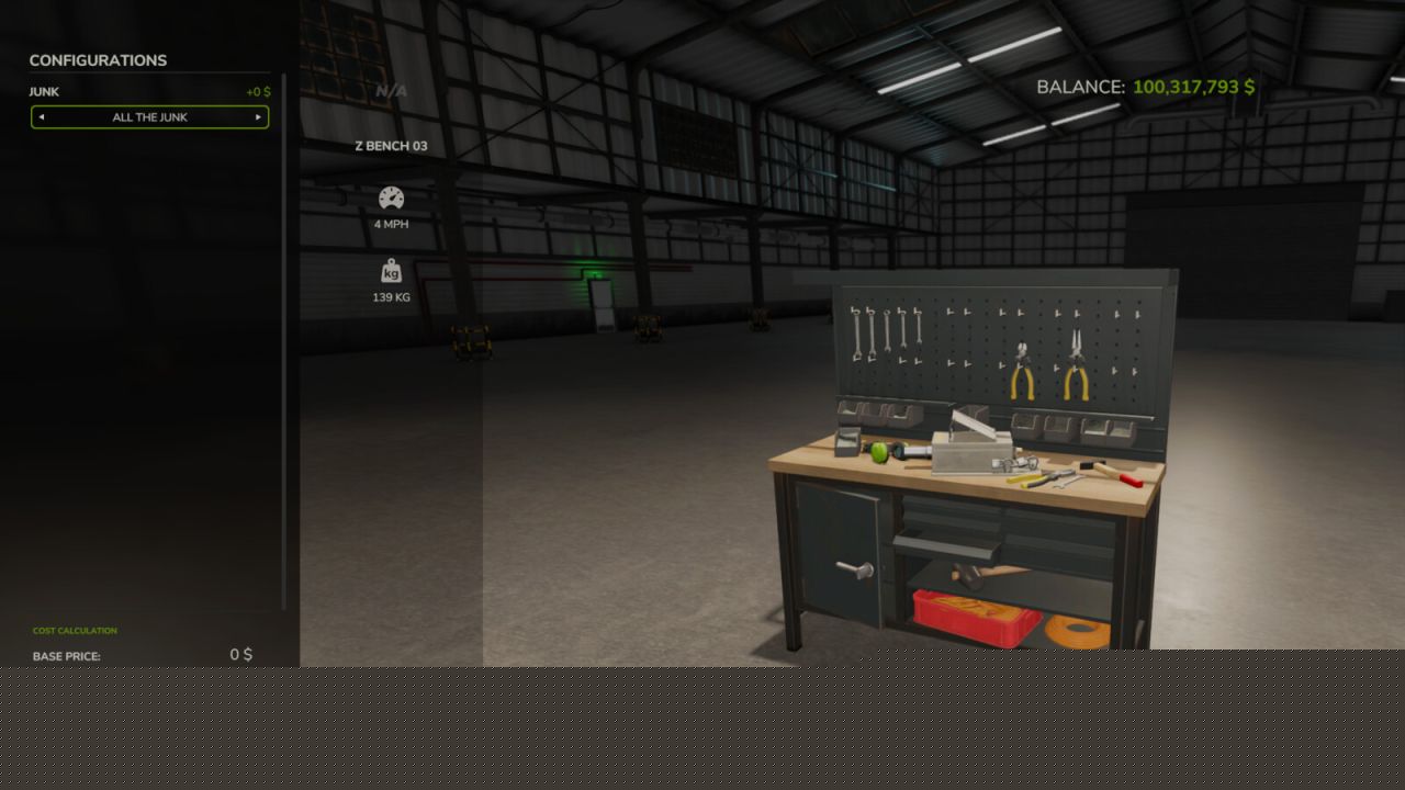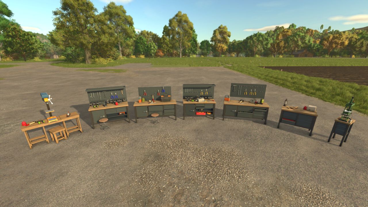 If you take the bench or shelf to a workshop, there are options for different amounts of junk and for the stool on benches with one. To delete the objects you need to use the vehicle menu in the main game menu. The names for each bench and shelf start with a Z so they appear at the bottom of the vehicle list.