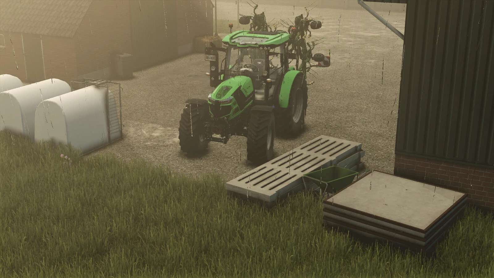 Contains 2 calf iglos, 1 wheelbarrow, slurry Hoses, a wheelsset and concrete/rusty details.