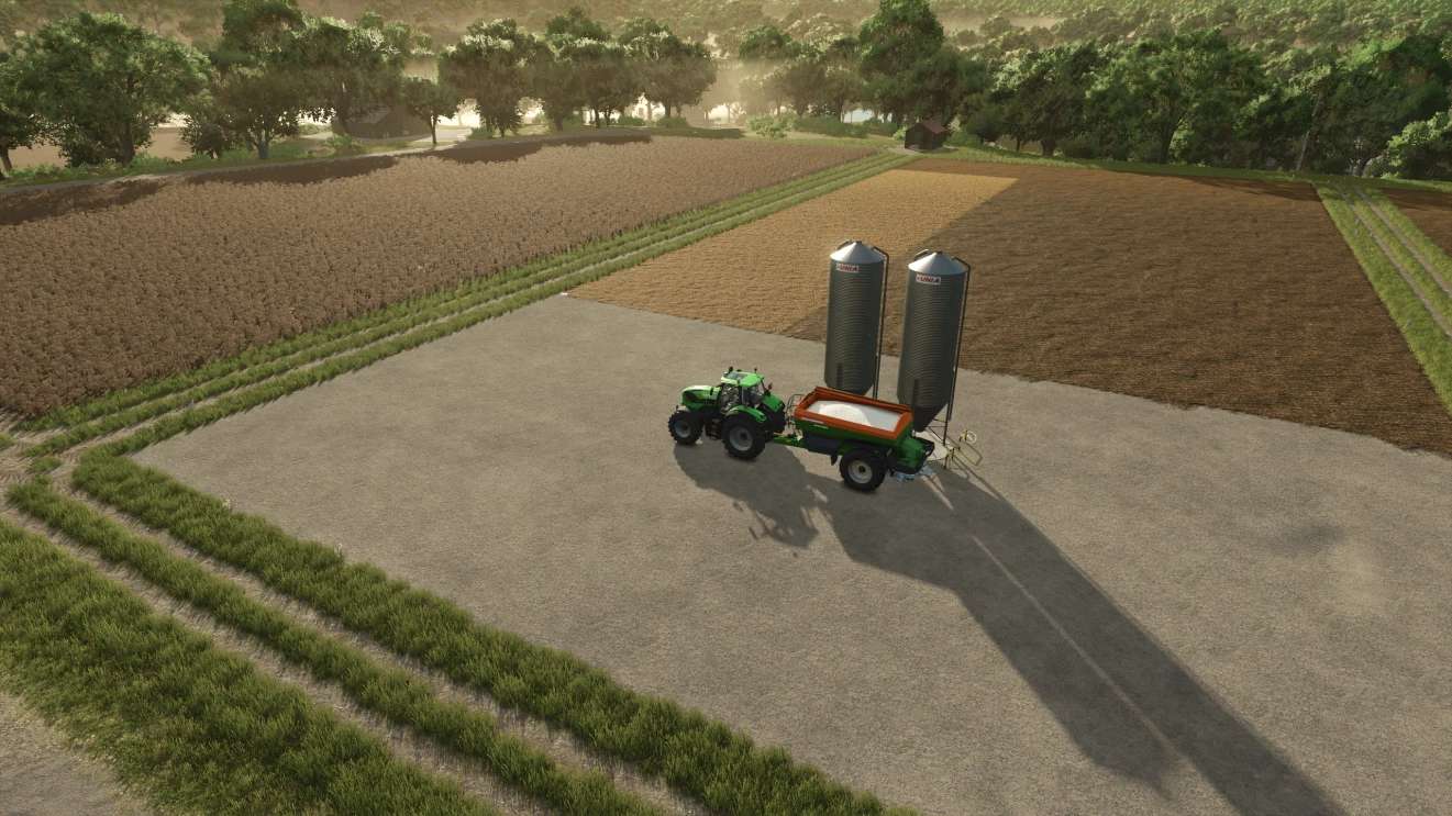 It can store the following: (road salt, lime, pig feed, seeds, oats, wheat, mineral fertilizer, herbicide, liquid fertilizer, twine, mineral feed, round bale nets, silage additives, wrapping film, water, diesel, Ad Blue).