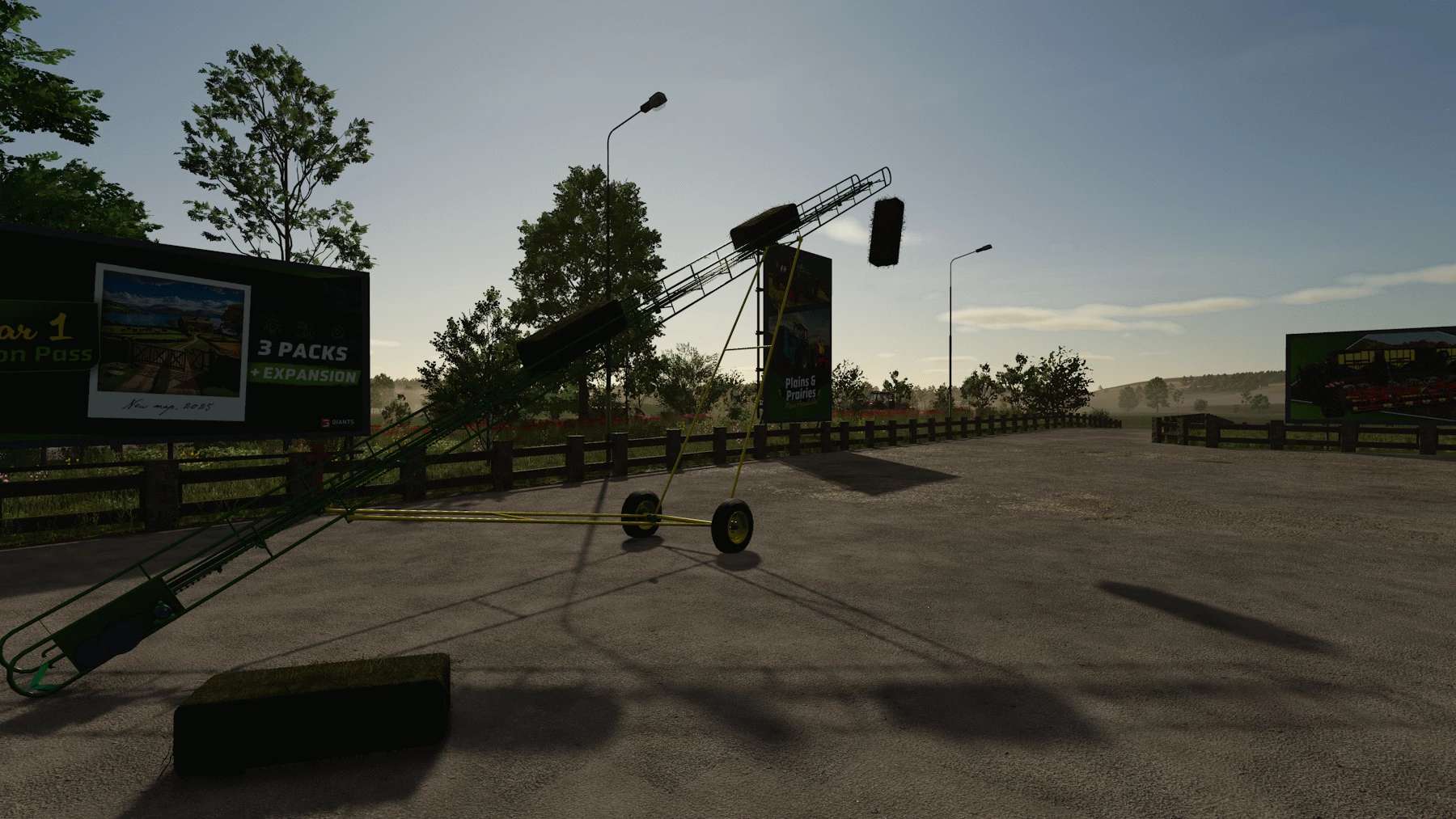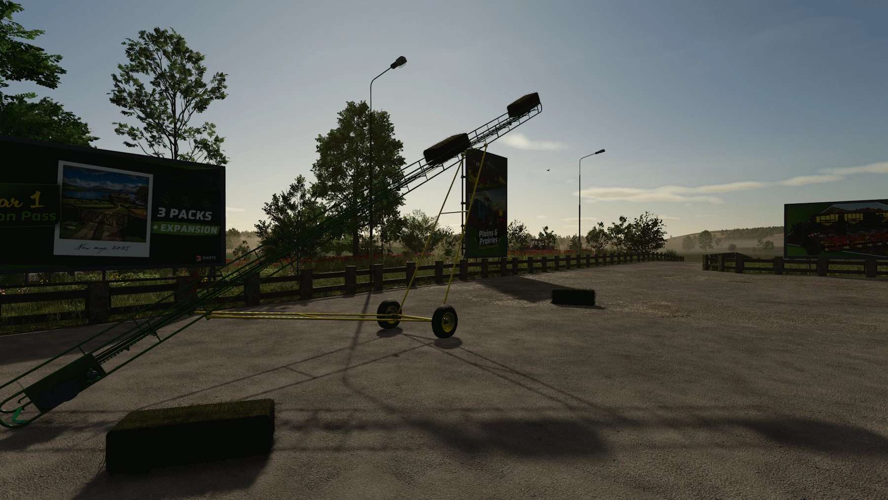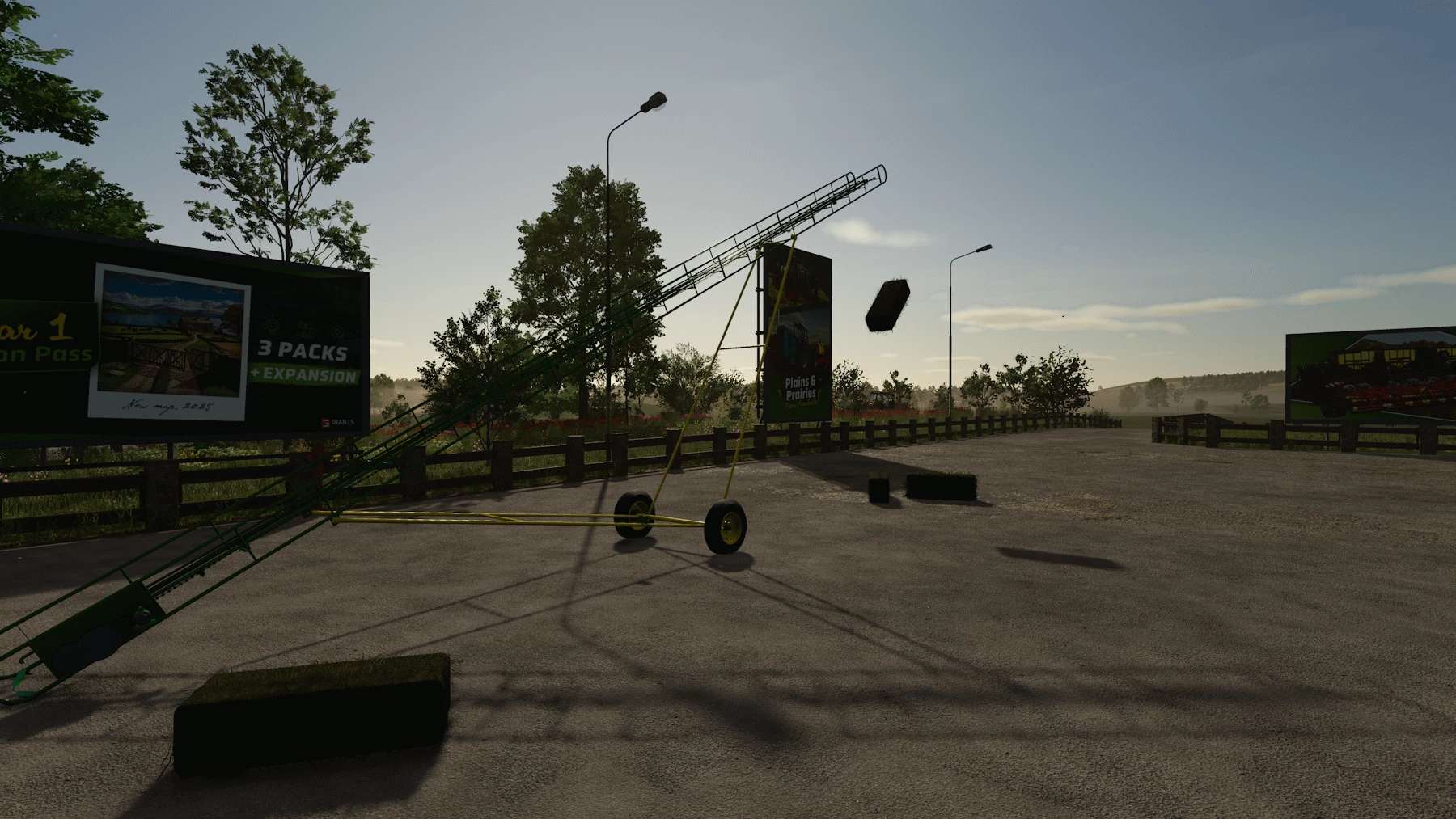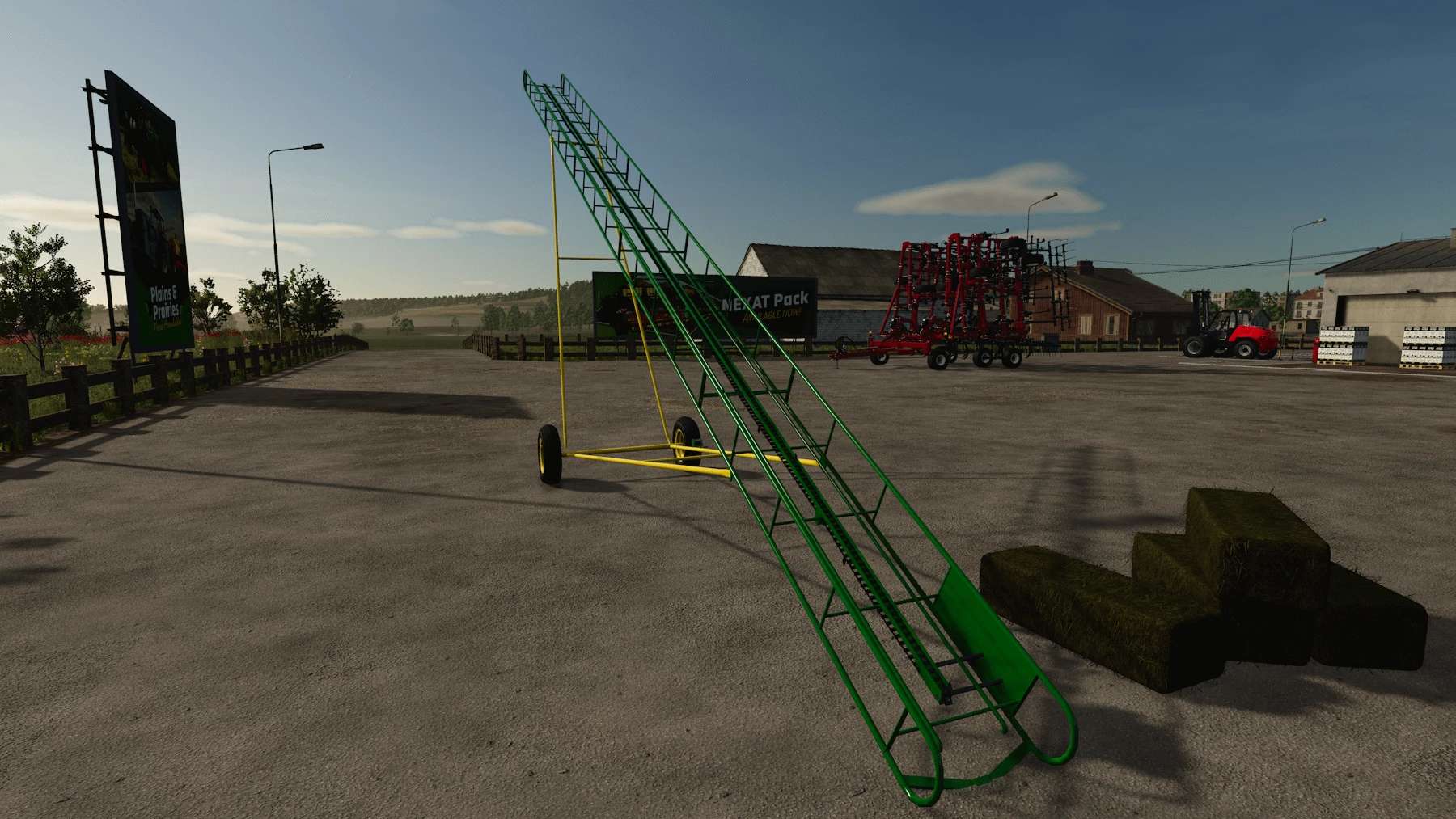 Happy Canada day eh ! well I converted it over the week-end, new material system, ingame wheel and tire and I finaly modeled the chain on it (yeah that’s new !) I did try to animate it as a 3dtrack but that didn’t work too well, I mean, all the template availlable to create a 3d track have 100 bone to animate, the conveyor chain got over 600 link on it (-_-‘) I’m not that good with bone mesh and animation in blender to mess with that, so I let the normal chain on it. Other improvement, I did my best to make it stop moving while a bale goes up, but the colision physics are fighting each other to push the bale so it still move a tiny bit, but it’s 97% better than it was in fs22.