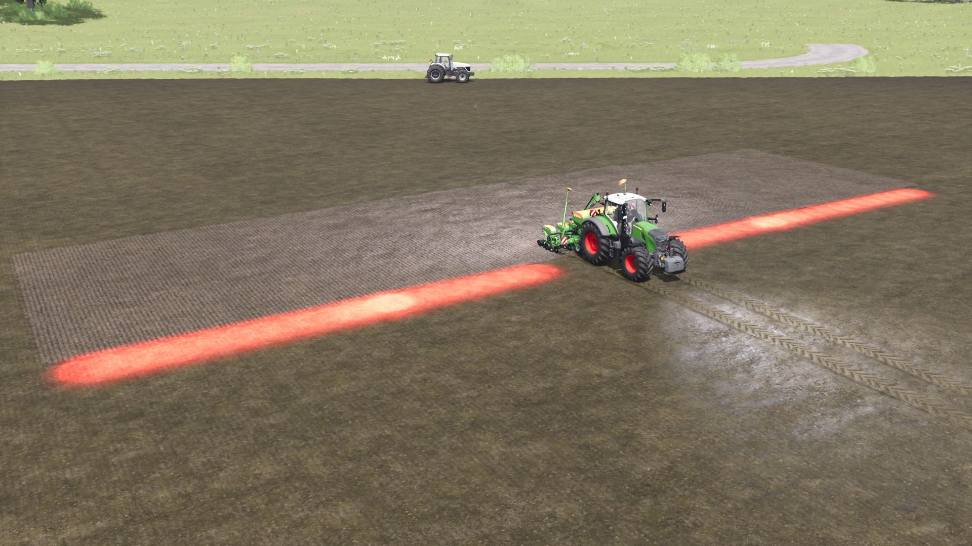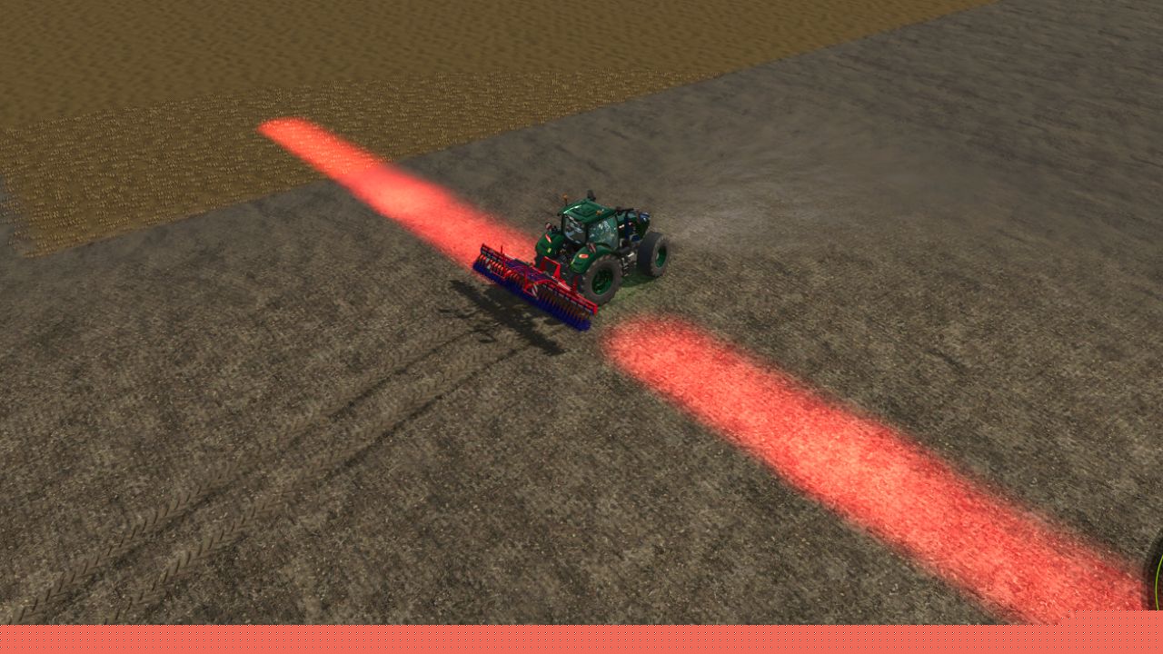 Choice of Base, 25m, 50m or 100m unreal working width with Red or Blue Visual Guides – Turn them on via vehicle lights.