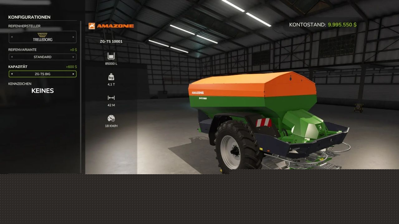 Here you already have one of the largest fertilizer/lime spreaders available on FS25, by far! Based on the basic ZTS, its capacity can here increase to 85,000L, which will already make it one of the best tools to have on your farm