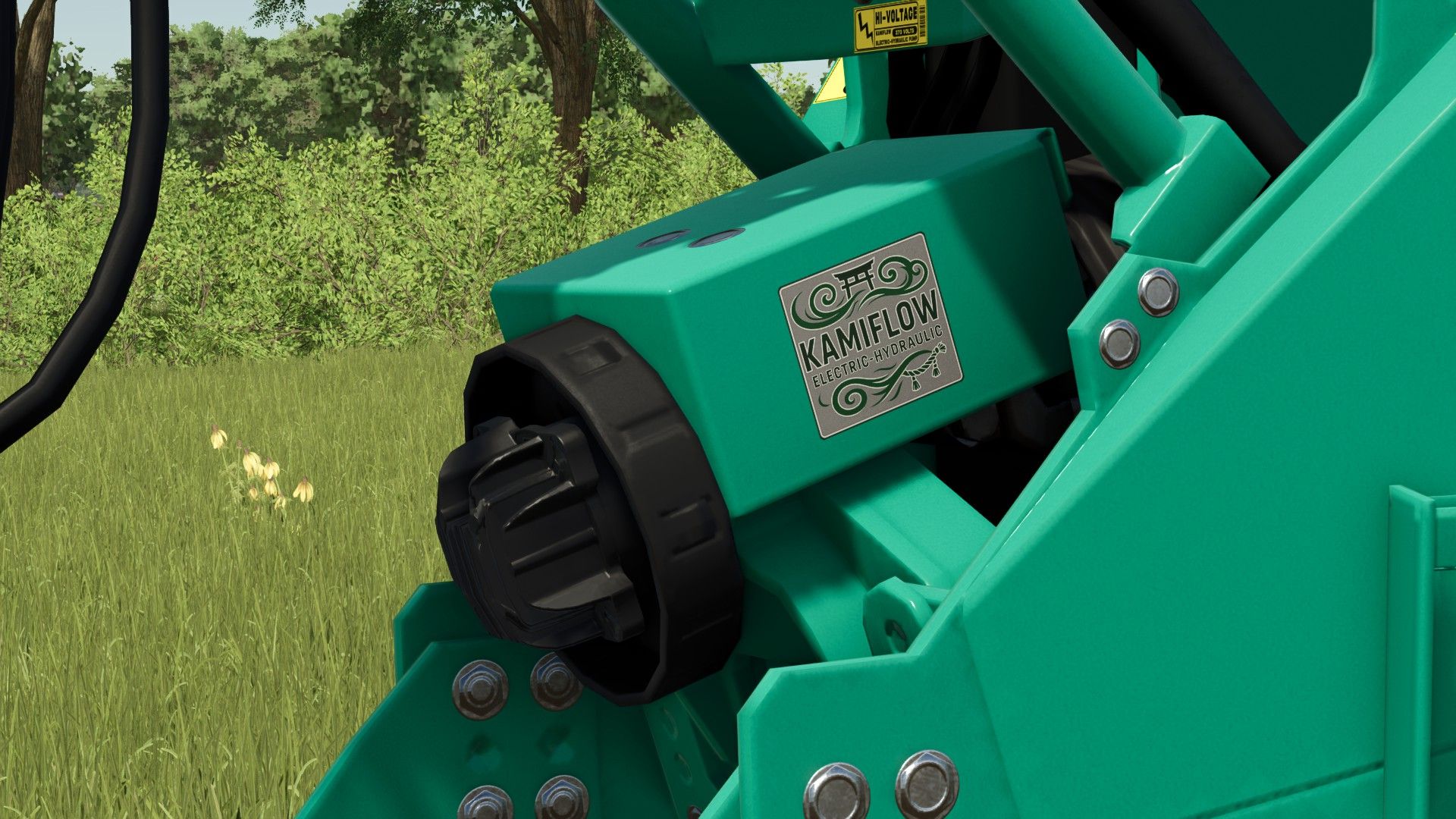 Supporting this system is the Spirit Trim F-Series front mower, balancing the operation with precise front-end coverage, while the baler itself is powered through the innovative KamiFlow Electric-Hydraulic PTO, a refined design that ensures reliability under all conditions. This efficiency allows for operating speeds up to 18 MPH | 28km/h.