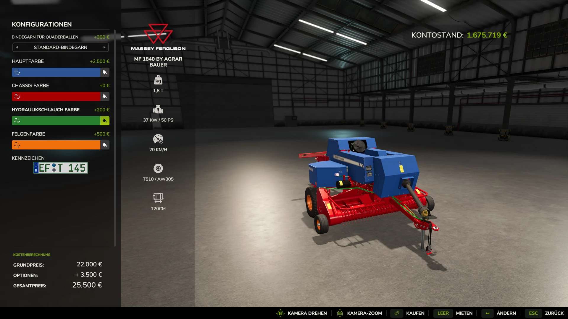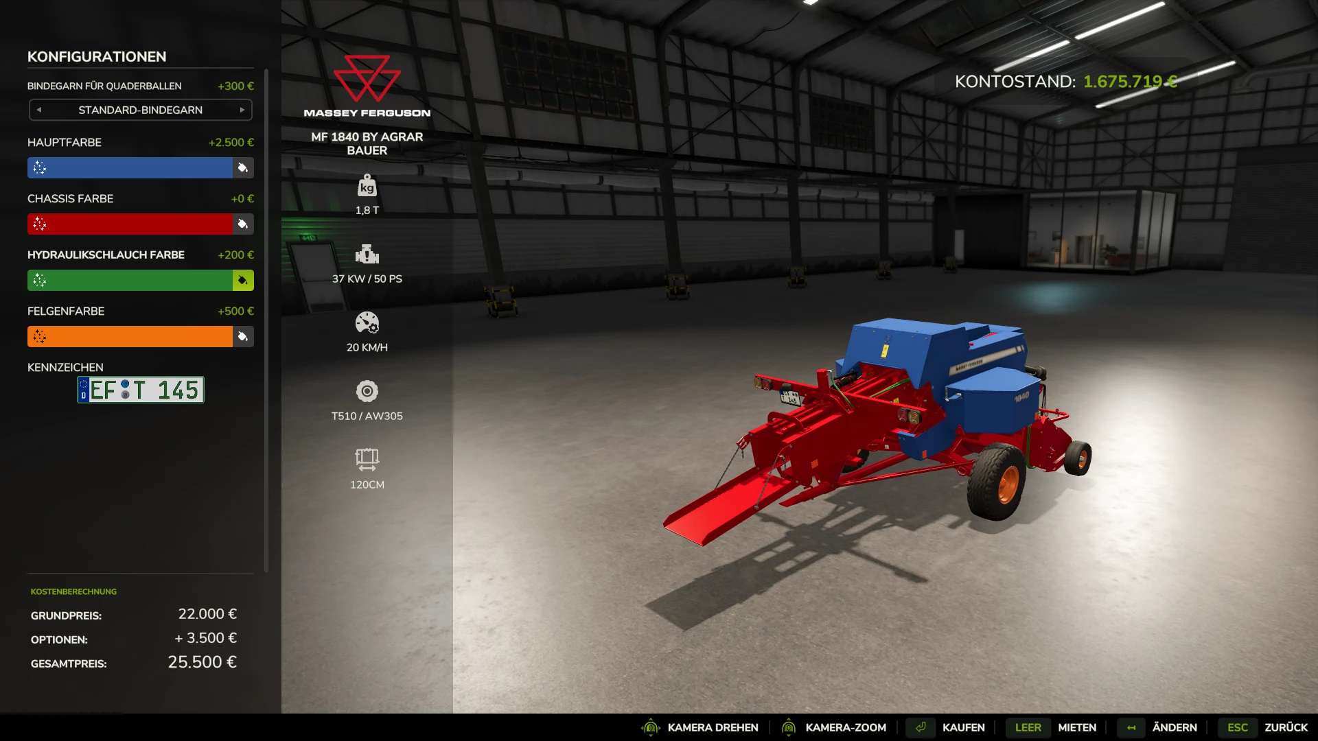 I’m offering you my Massey Ferguson 1840 HD baler with color selection.