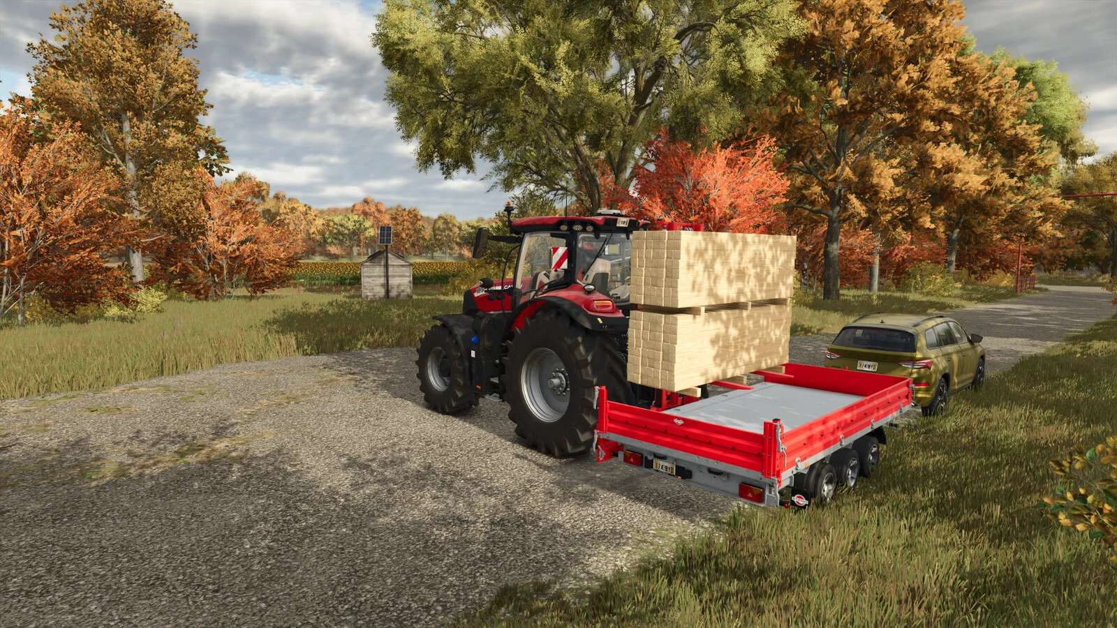 It’s also equipped with standard pallet forks for pallets and bale spikes for bales.