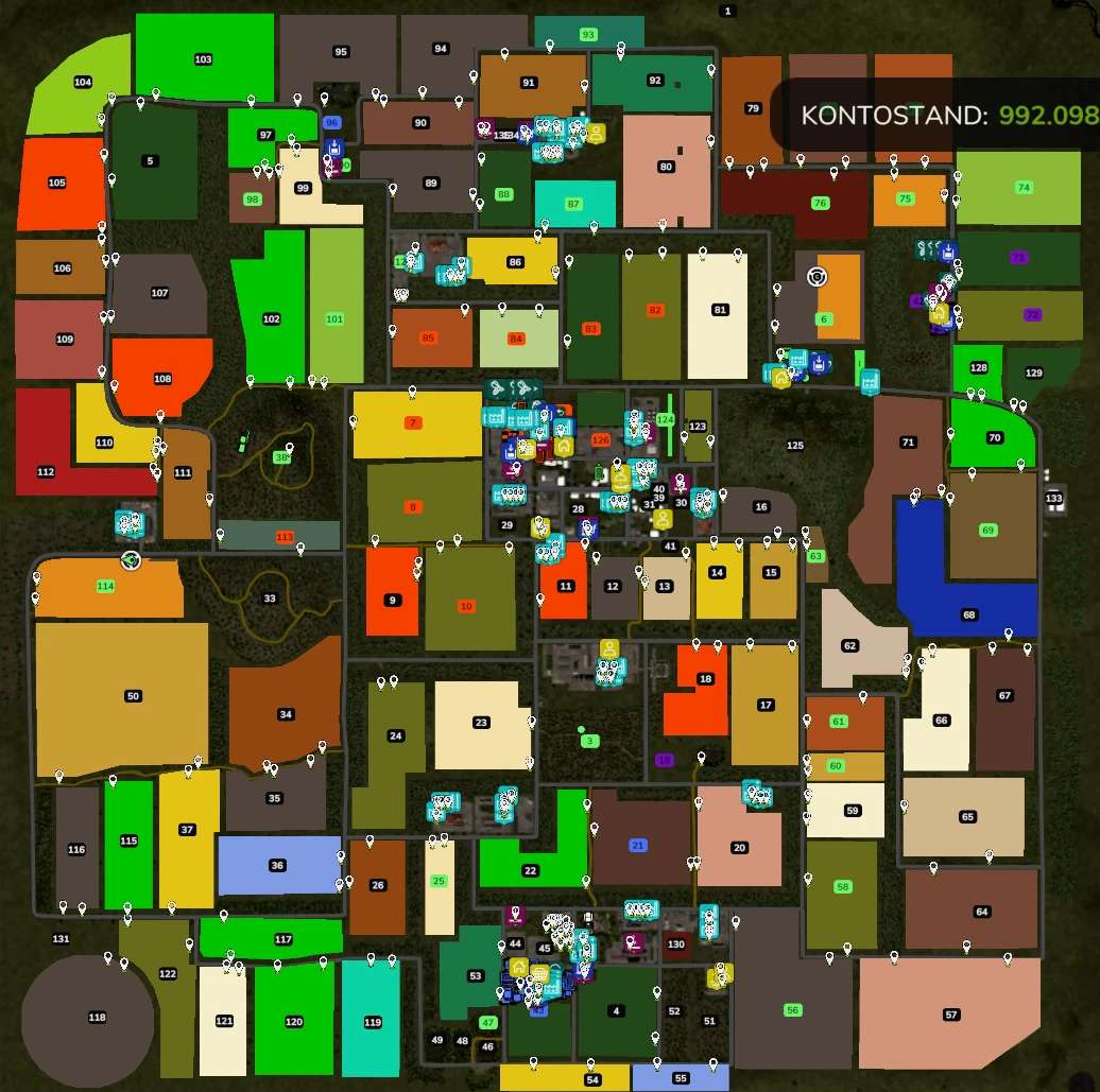 A 4x multifruit map awaits you, featuring a starting farm and 6 building plots for you to use. You’ll find approximately 96 fields and meadows. Average field sizes are 15 hectares. The idea is that you can build your farms however you like.