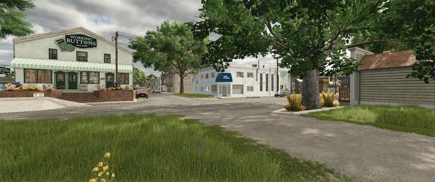 Realistic Small Town – A detailed town center adds immersion and provides key production and sell points.
