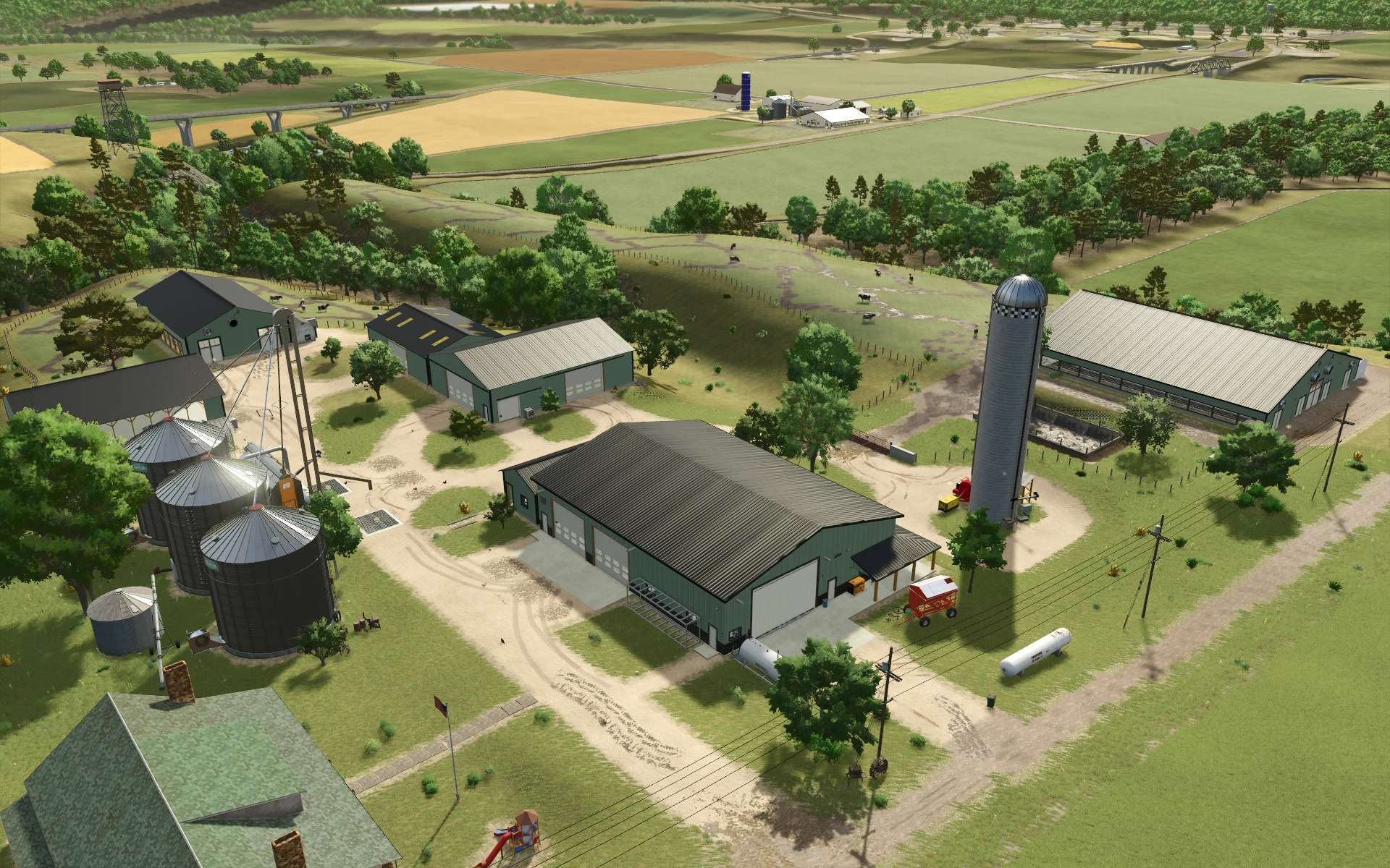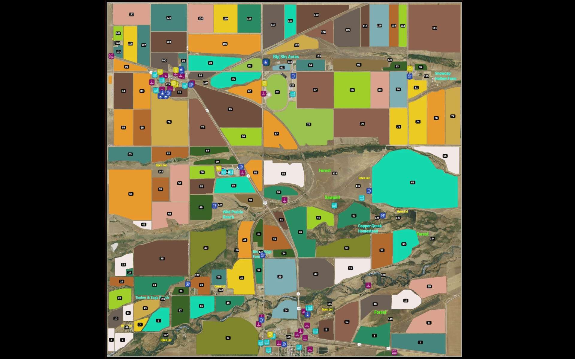 This 4x map is inspired by the vast, open landscapes of central Montana, USA, with a strong emphasis on agriculture. It features expansive farmland, rolling plains, and realistic terrain