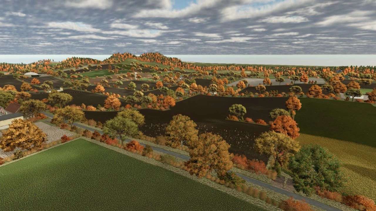 The map offers agriculture on a human scale, with plots ranging from 0.5 to 4.5 hectares, ideal for small-width equipment and realistic progression. The hedges structure the landscape, cut out the fields and reinforce this bocage atmosphere typical of the West.