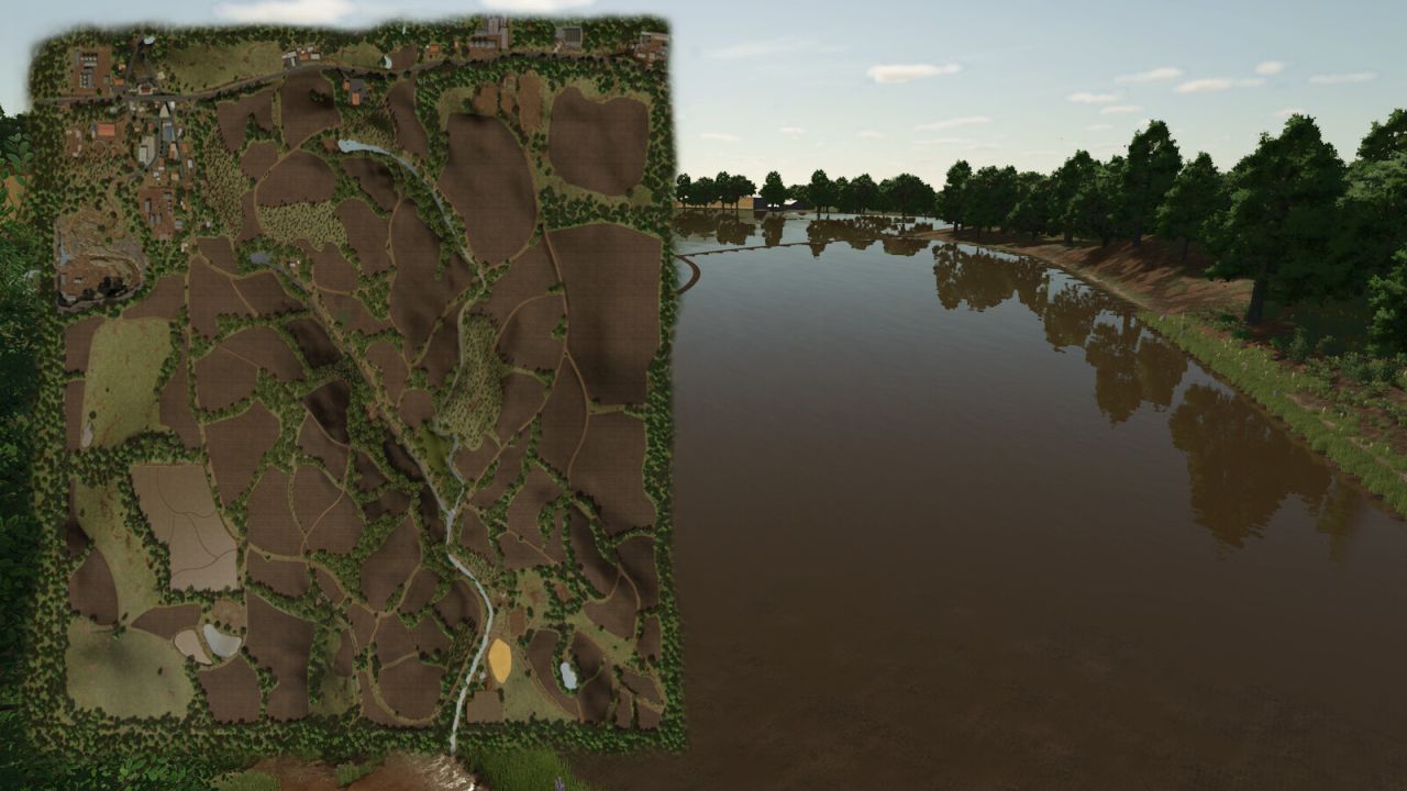 The map has small and medium-sized fields and a pronounced terrain slope.