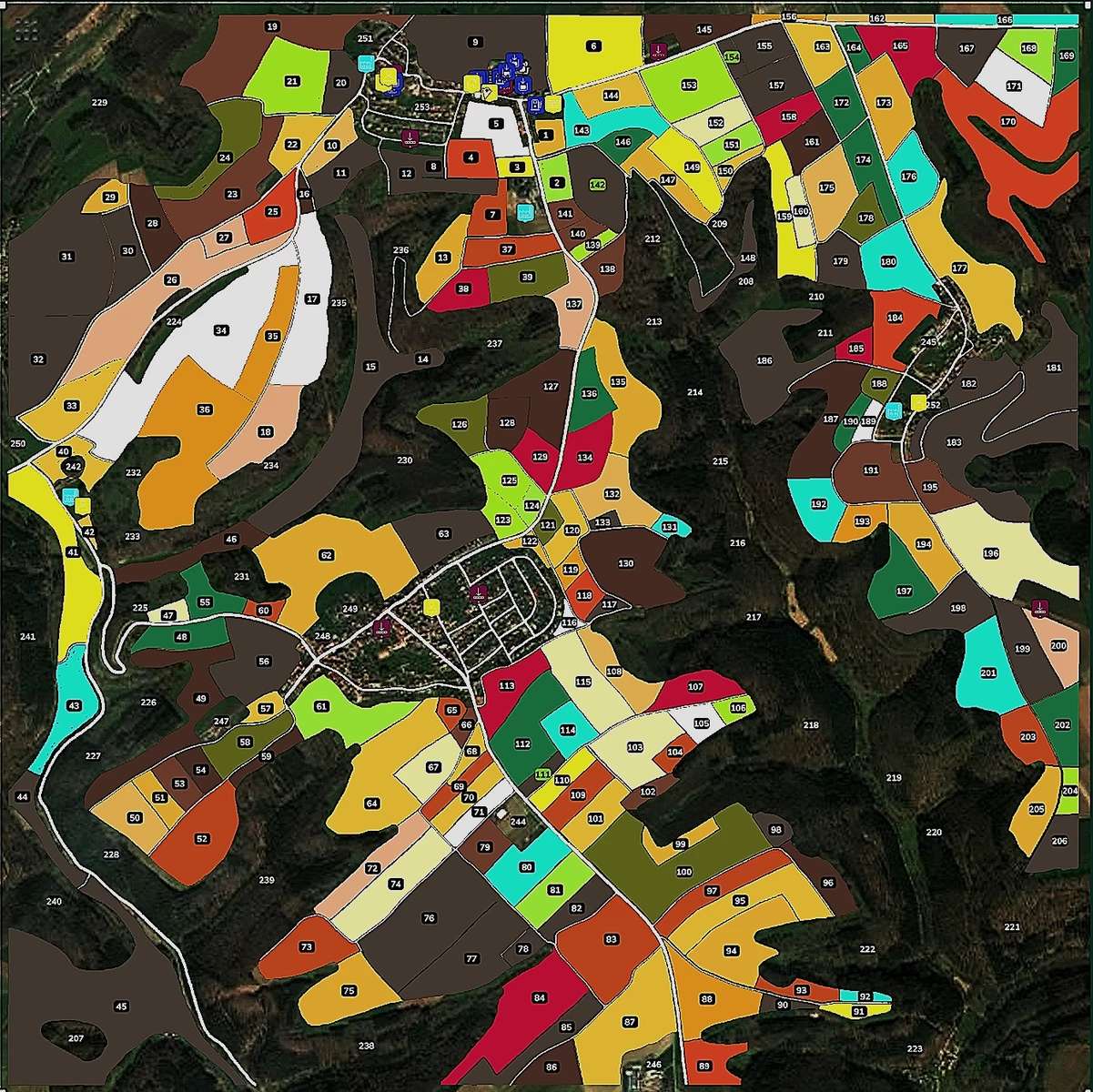 – 206 fields with a total area of 825 hectares, ranging from 0.33 hectares to 28.23 hectares