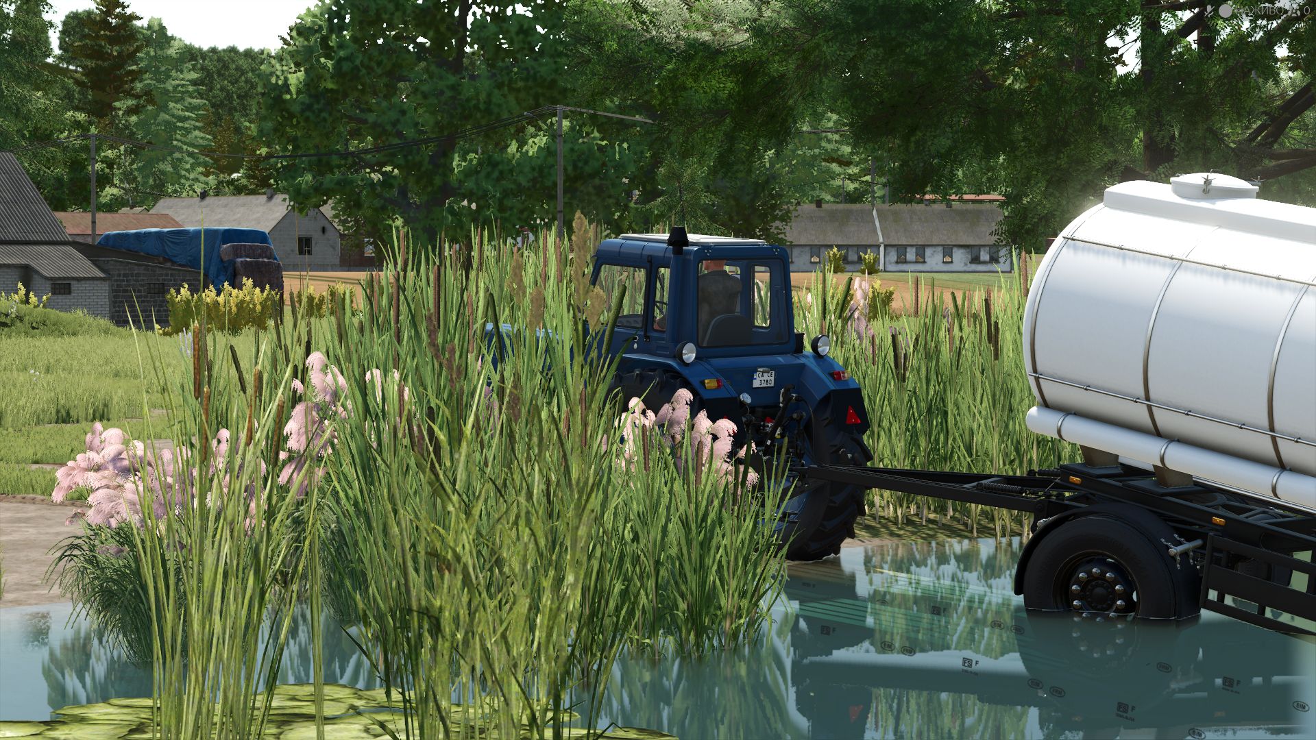 The map is made in the Ukrainian style: village, spacious fields, mixed forests, natural beams and hilly terrain. Realistic car and pedestrian traffic makes the map lively and dynamic.