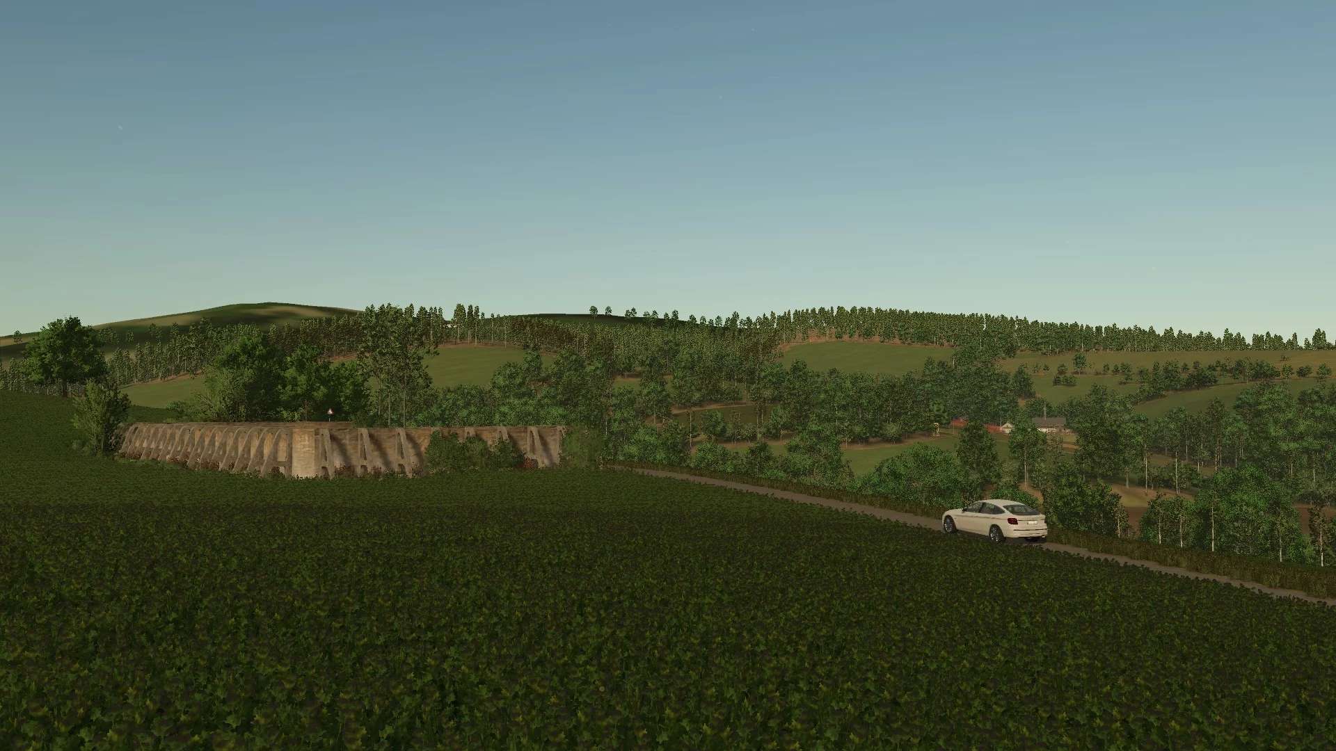 The map is created based on a real map location (49.185293, 17.969584) with a size of 2×2 km. However, for a better gameplay experience, fields, meadows, forests, and villages have been adjusted and expanded with production and selling points.