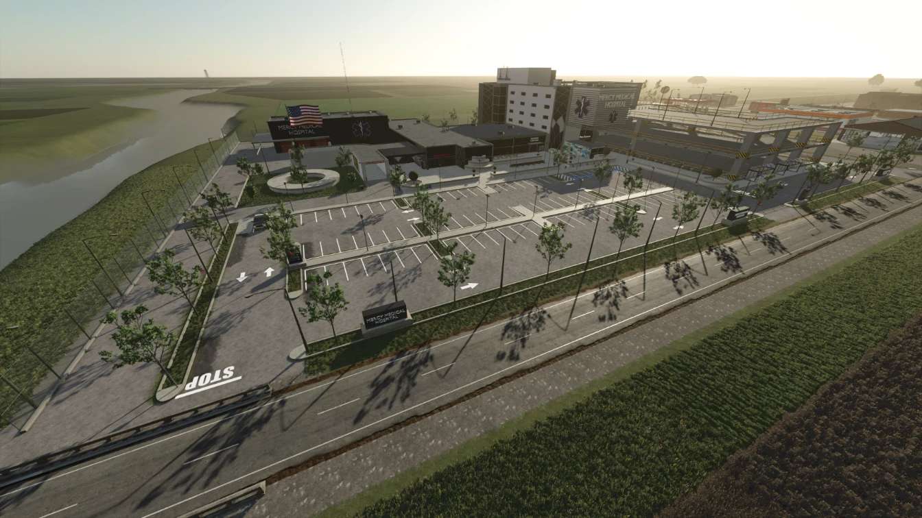 This is a Hospital used for RP and decoration. There is a section in the back left designated for EMS. The garages can be opened up and the lights on the inside can be triggered on. There is also a functional parking garage on the right side of the property with ample parking.
