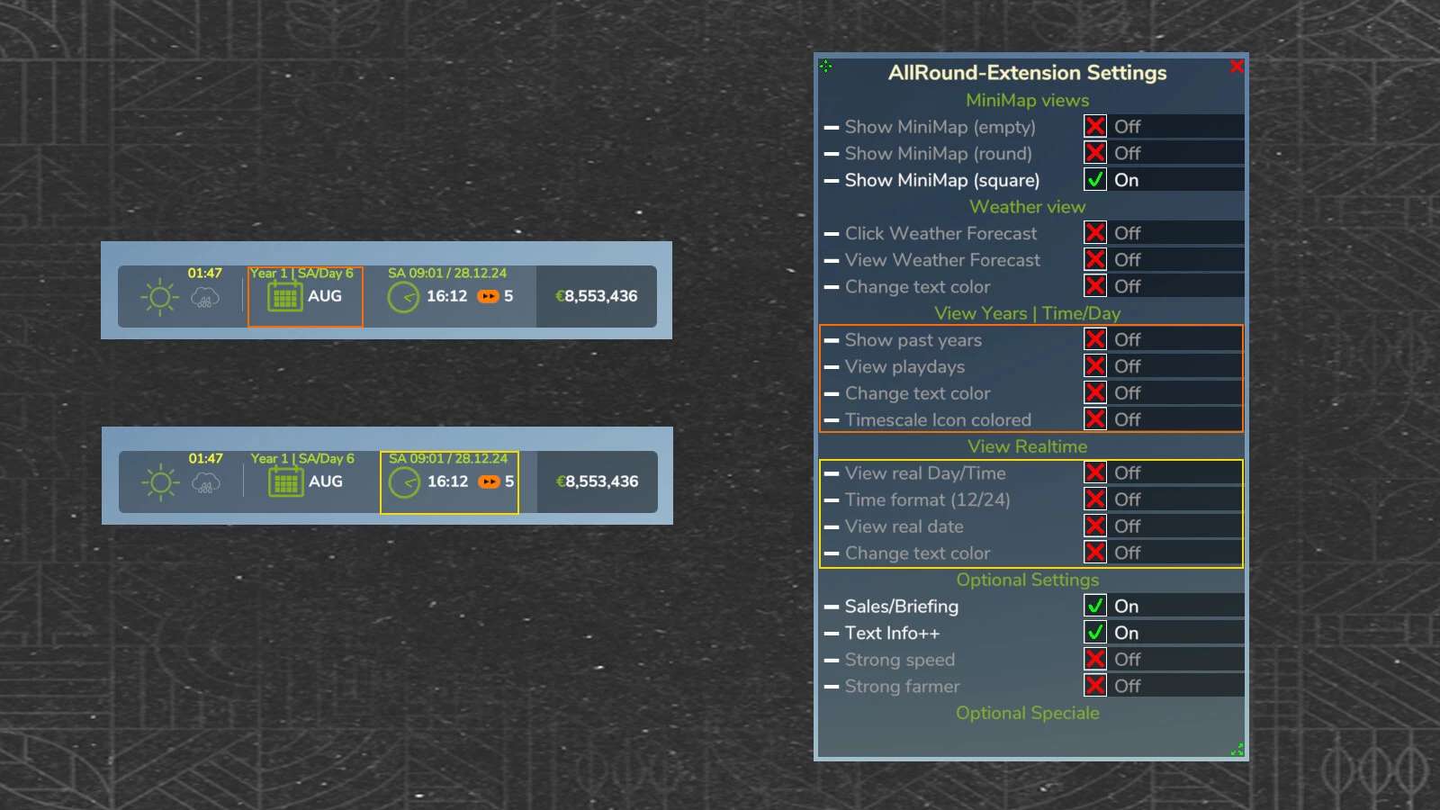 – new, optional view the current daily playingtime 1x a hour (over HL Hud System On/Off)