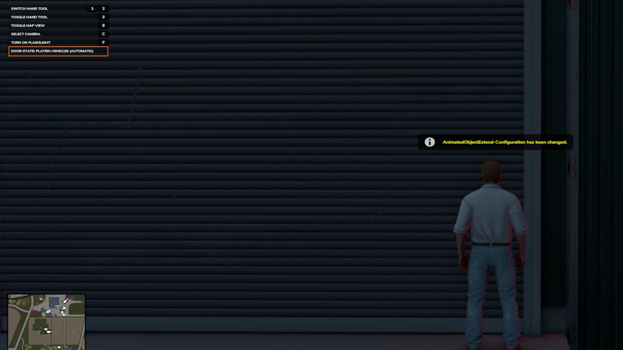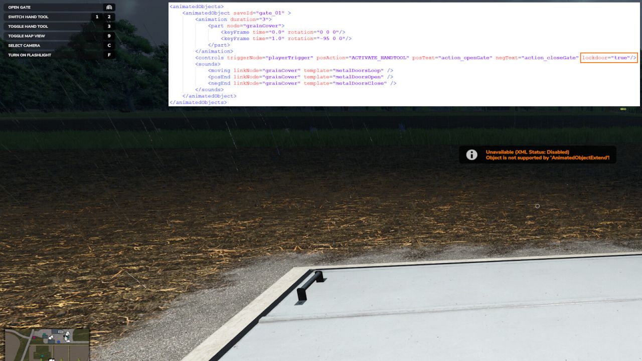 Use ‘autoopenState=”0 or 1 or 2 or 3″‘ in the controls of AnimatedObject to change the function 0=disabled, 1=on Vehicle+on Foot, 2=on Vehicle, 3=on Foot.