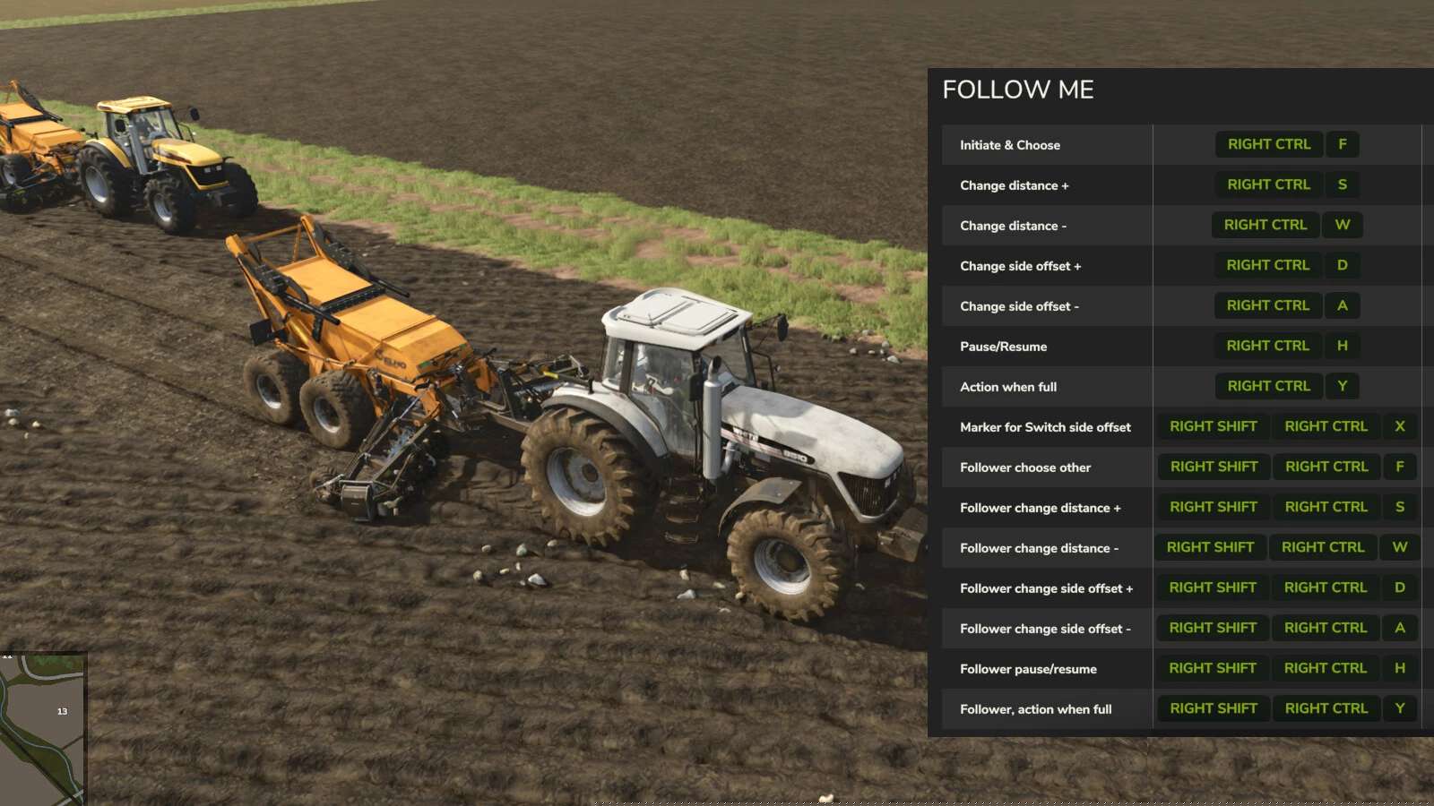– When in a vehicle, its own distance and side-offset to a leader can be modified using actions ‘Change distance’ (default: RIGHT CTRL + W/S) and ‘Change side offset’ (default: RIGHT CTRL + A/D).