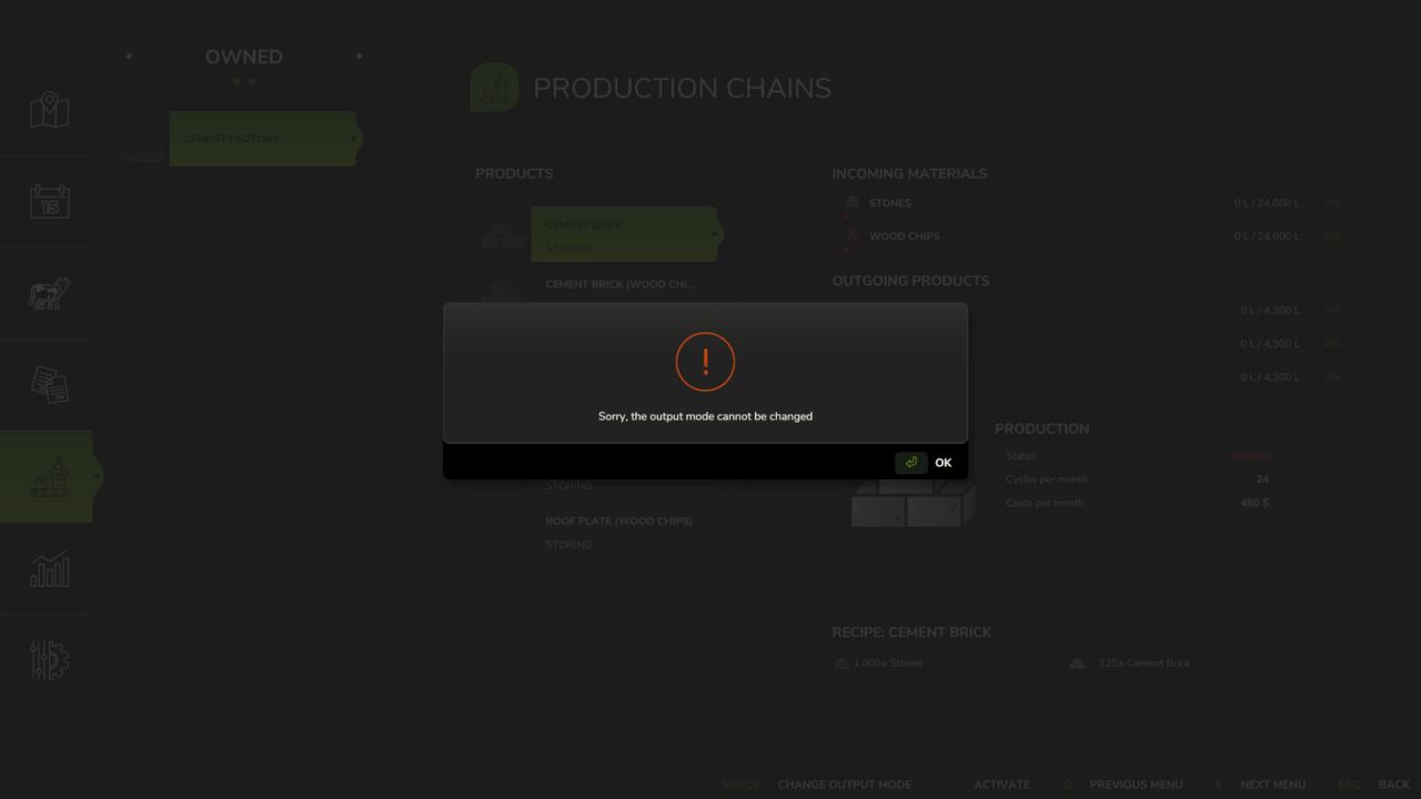 Interest rate on the loan 15% per month. The initial credit limit is zero (credit limit increases as purchasing farmlands and buildings).