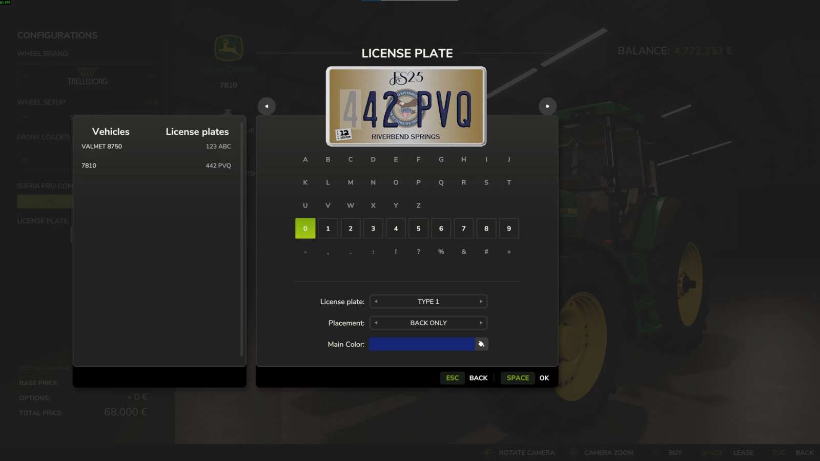 Shows a list of all owned vehicles and tools in the the license plate selection menu.