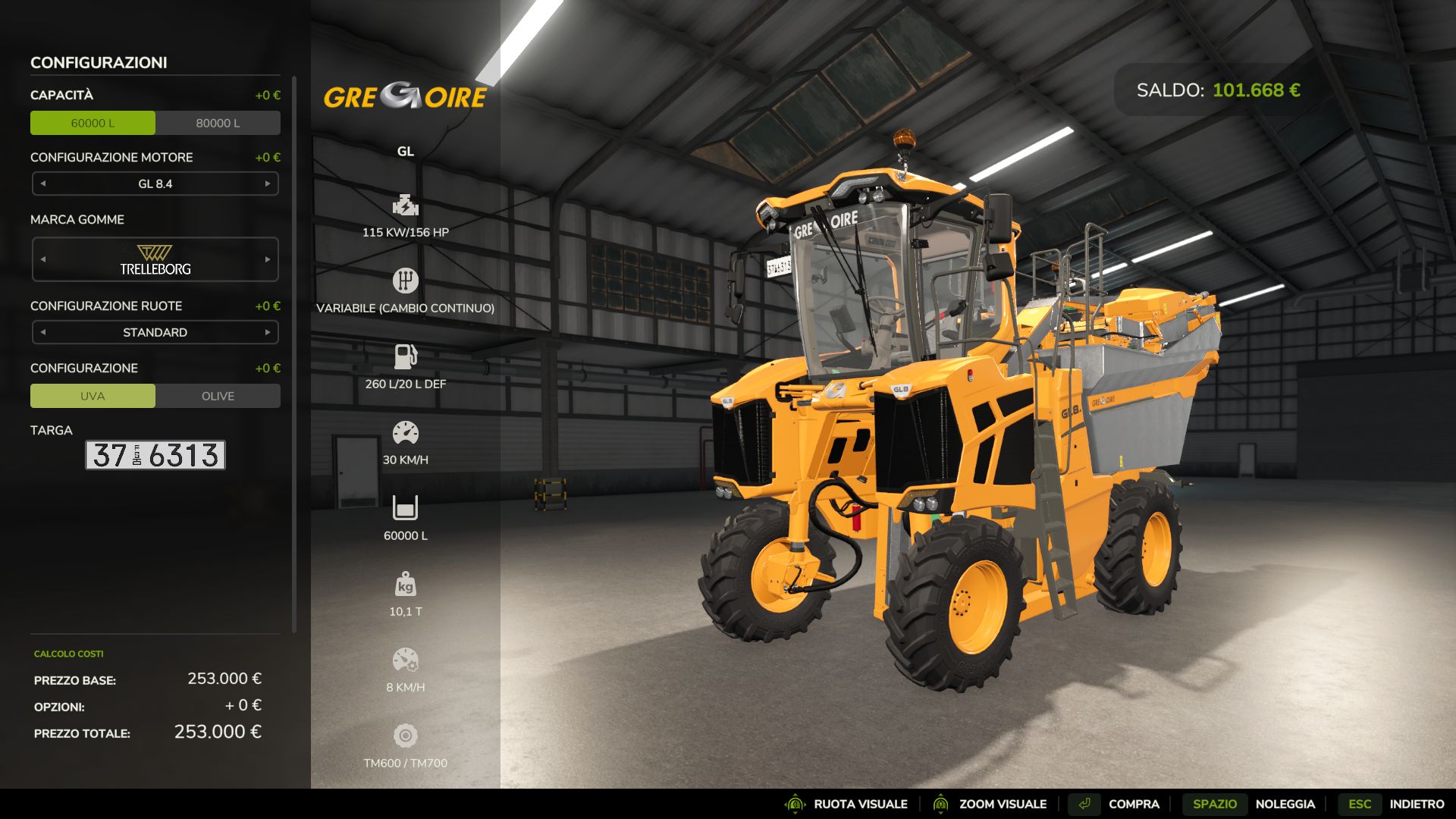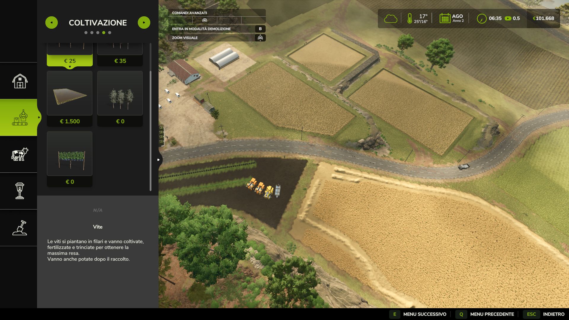 This MOD allows you to increase the grape and olive yield by 8 times and to cope with the increase I made two collectors available and a trolley with increased capacity and in addition there is the possibility of positioning the rows of grapes and olives for free.