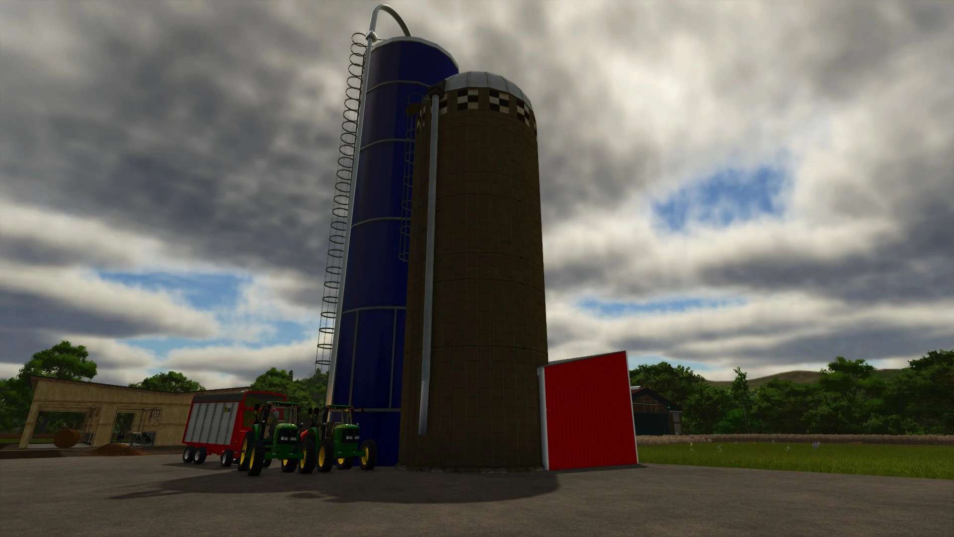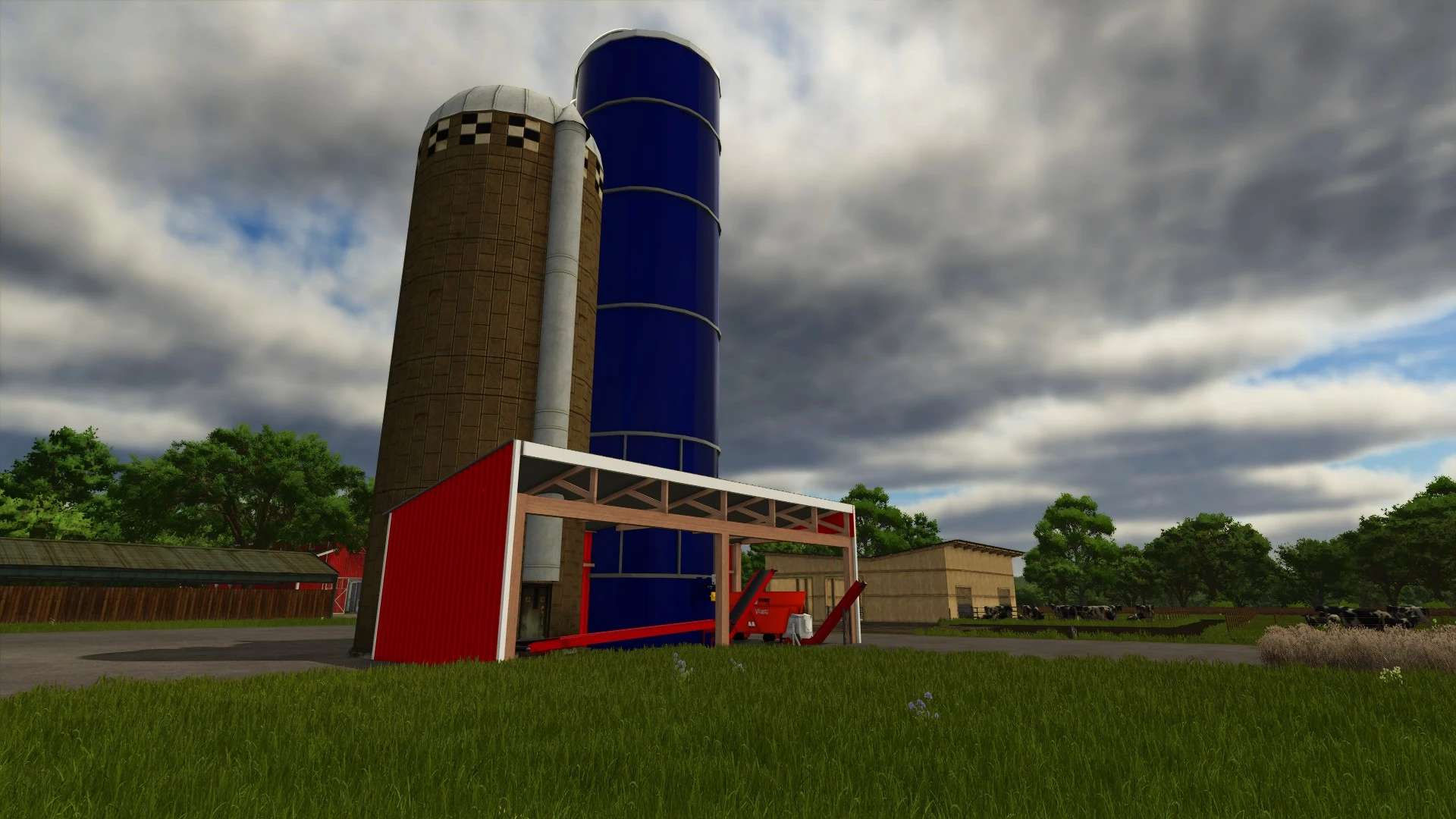 Many different options for rations. Load chaff and grass into the silos using the NH F62B Blower, with the option to load maize into the Harvestore, like high moisture corn. Can drop bales of hay into the mixer as well, or load chaff or grass into the mixer with a loader. Sorry, no option to load silage into the mixer.