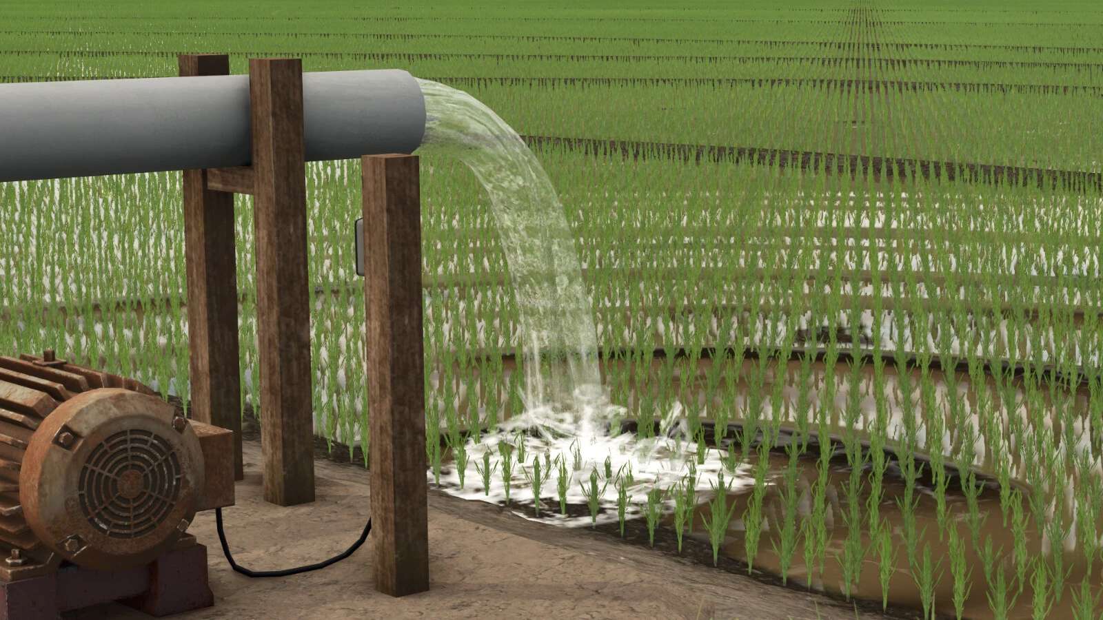 These are modified rice fields with pump models based on those used in the region.