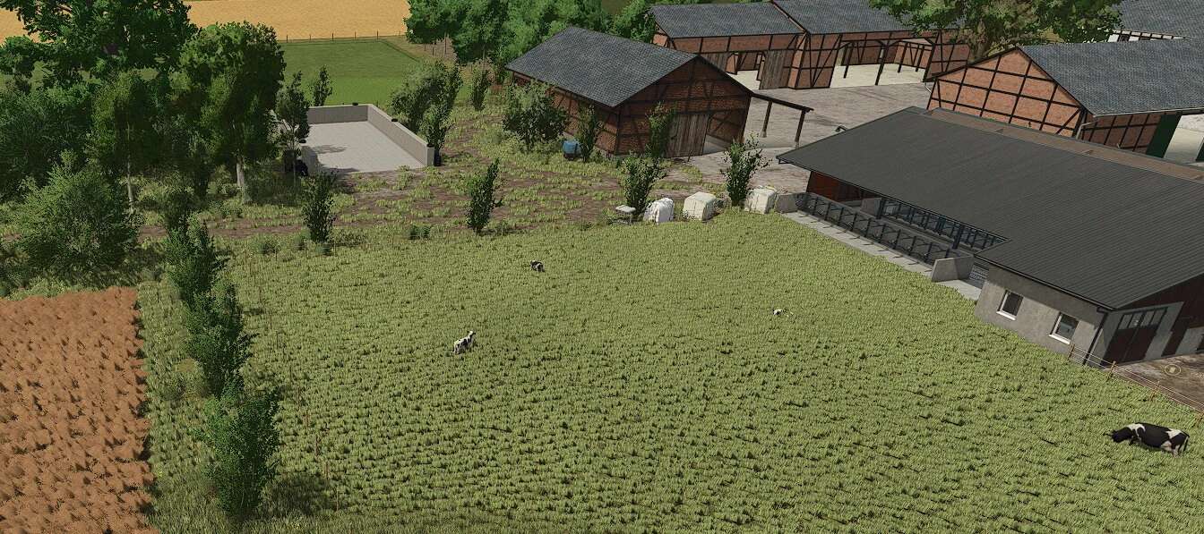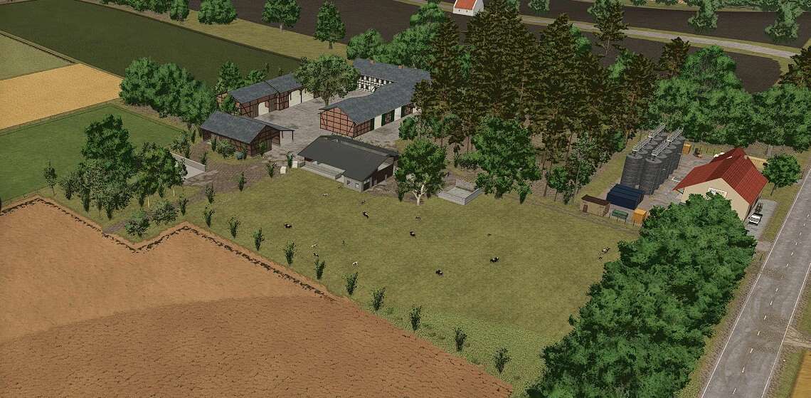 This is a savegame for Ka77e’s home. I built a dairy farm in the north of the map. The farm is in a timber-framed style and suitable for small to medium-sized machinery.