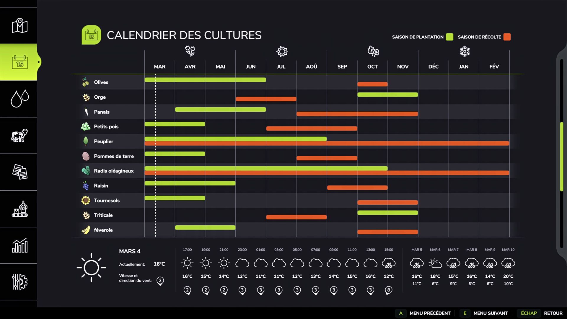 Change of semi/harvest periods to correspond to France plus Rowcrops for corn, silage corn, sunflower, soya, fava bean, beet, sorghum and PDT crops.