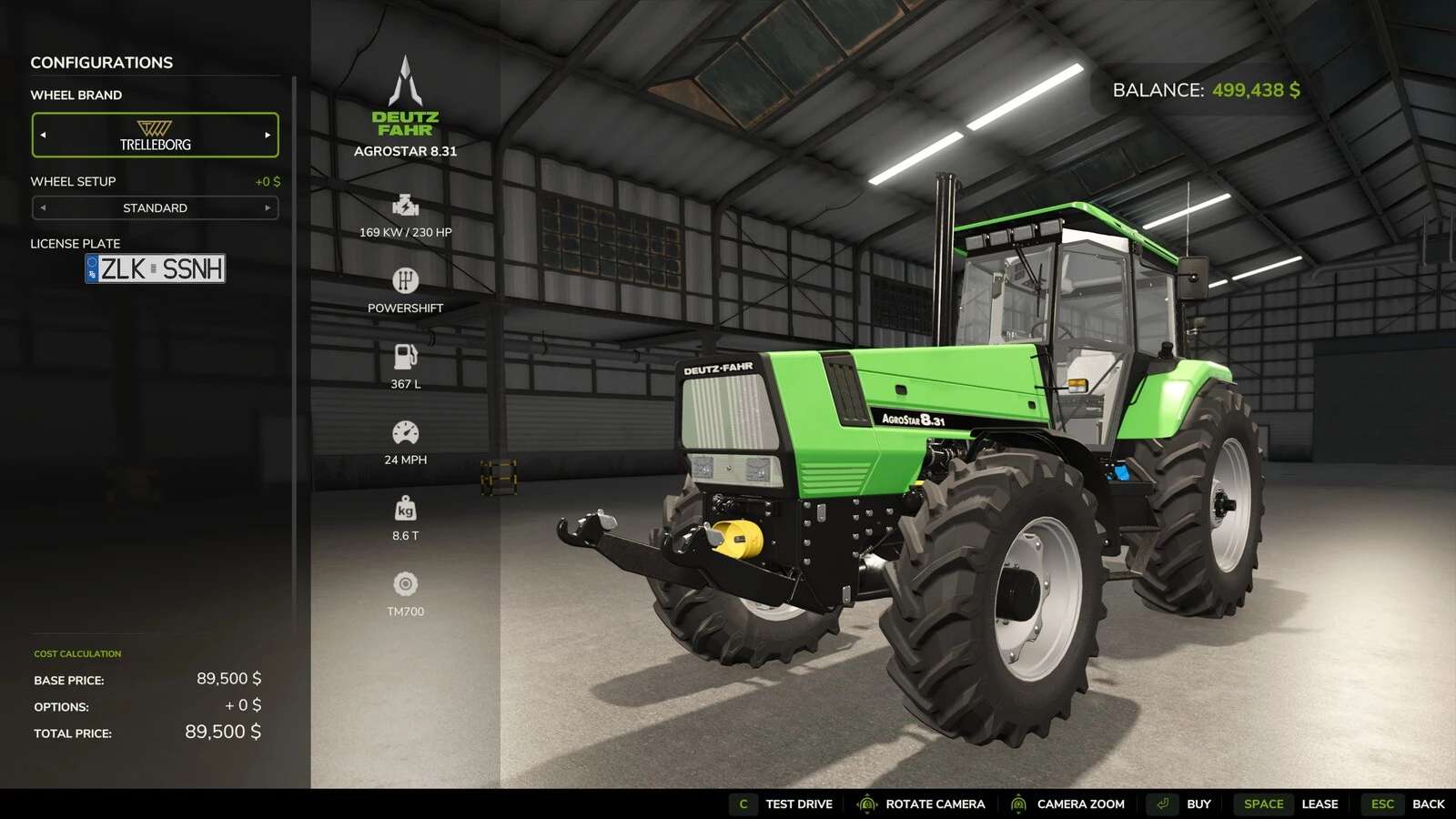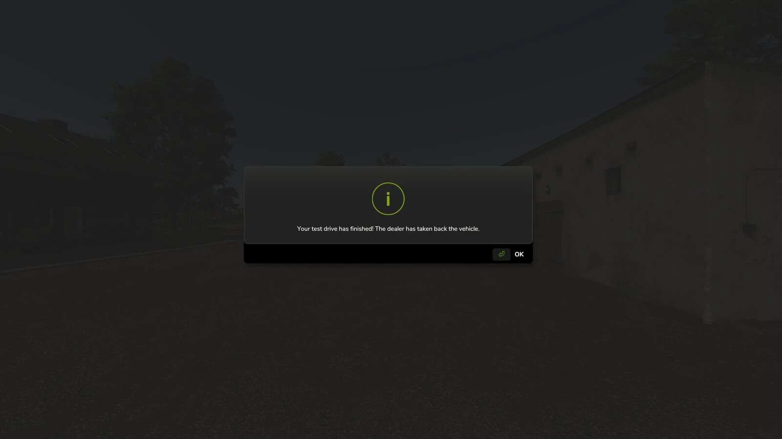 This mod lets you test drive a vehicle free of charge for a very limited length of time. This is useful if you want to check the size or weight of a particular vehicle (for example, to see if it will be compatible with your implements) prior to purchasing.