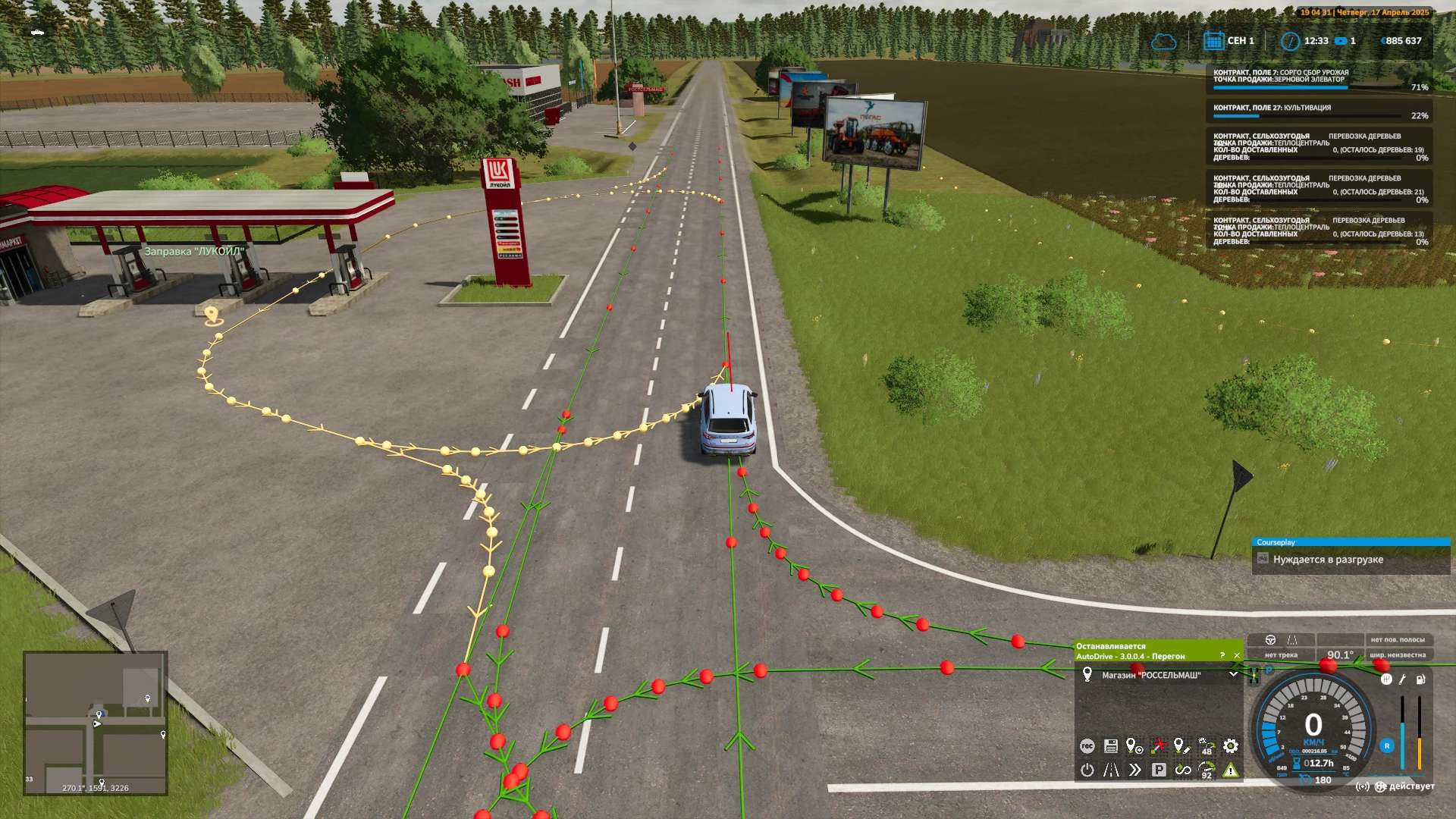 Routes are 100% complete. All fields are connected; All points of sale and purchase; Timber delivery.