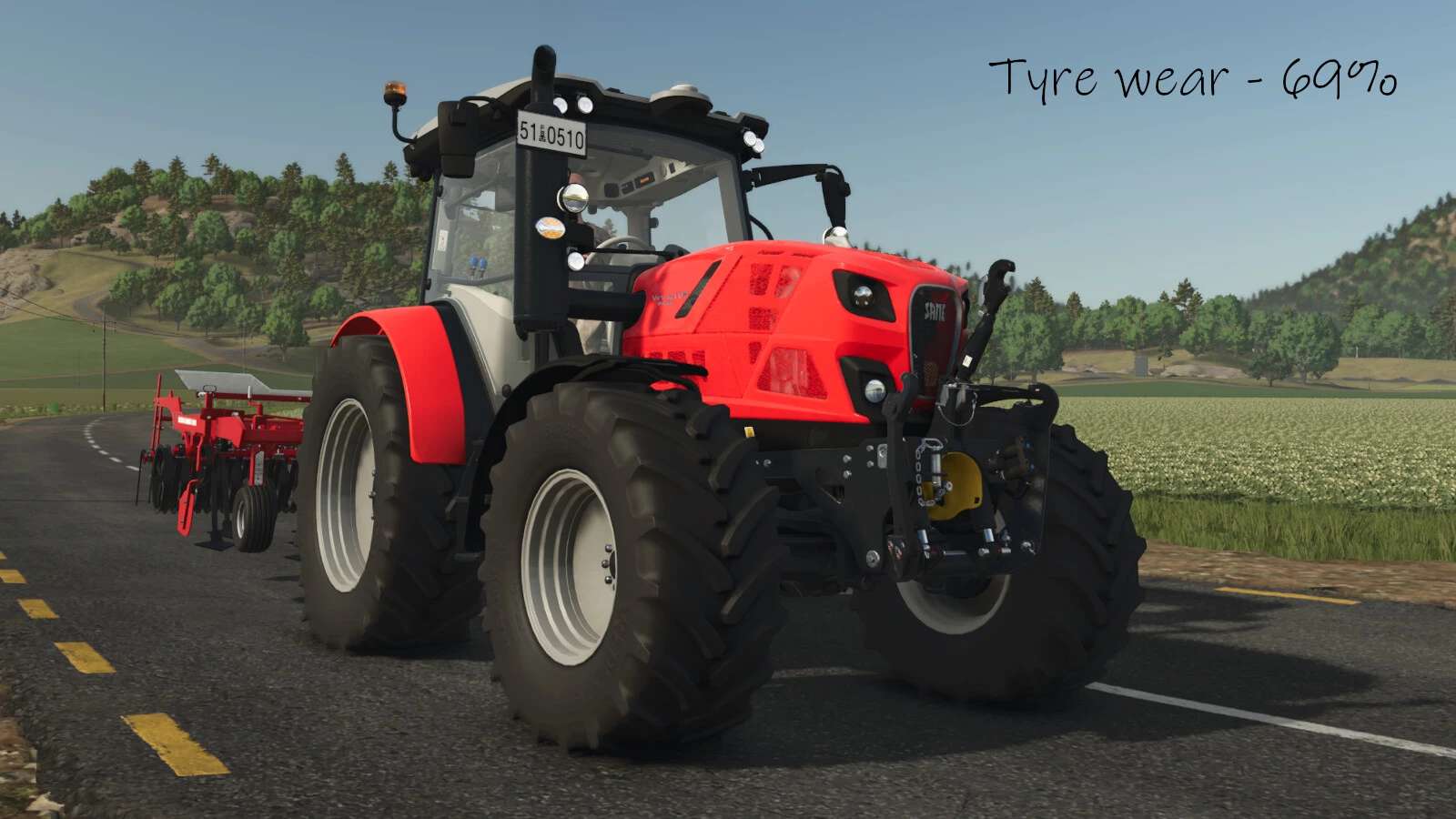 Tyres will get used with the traveled distance. By default tyre with diameter of 2m,