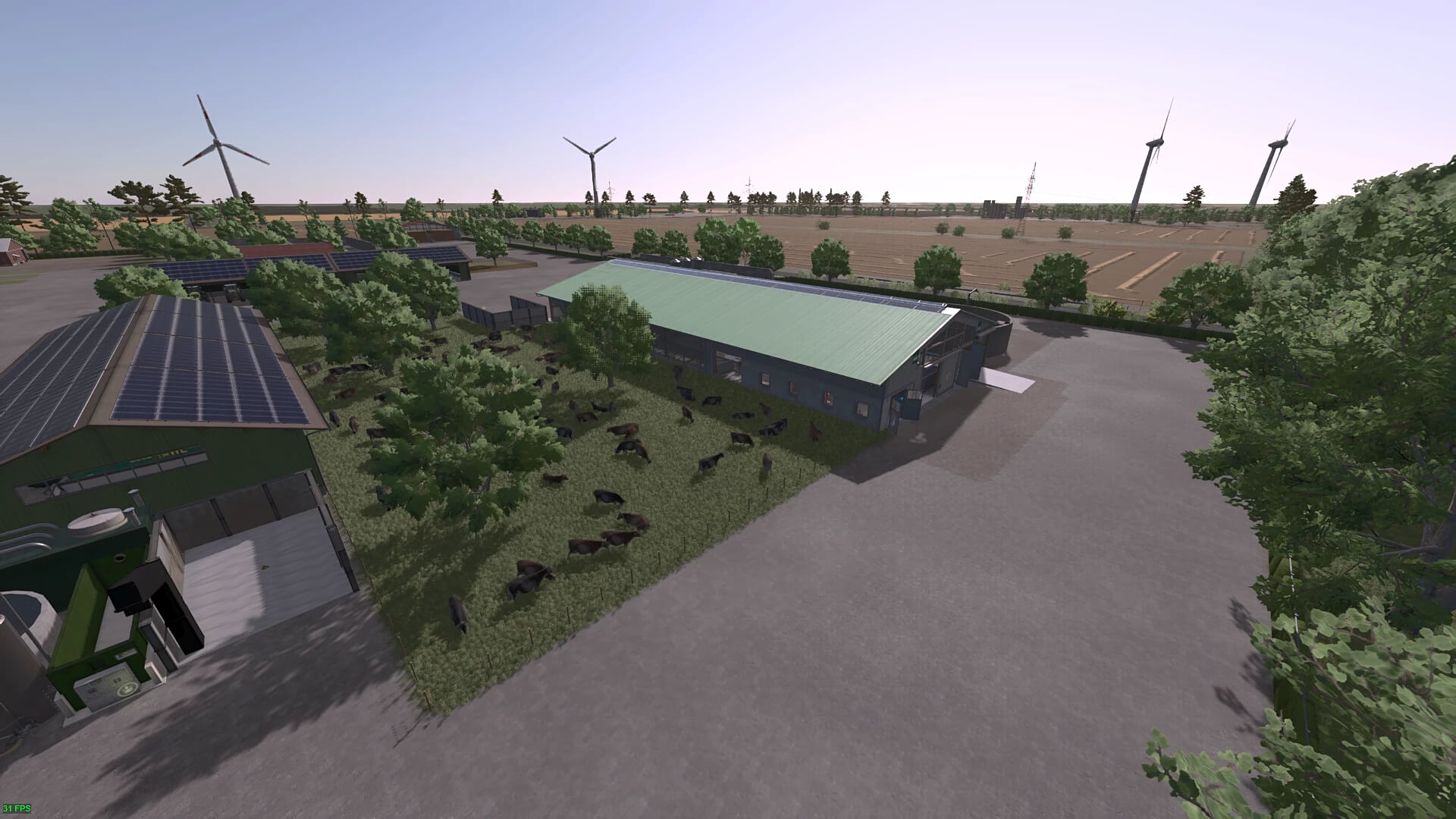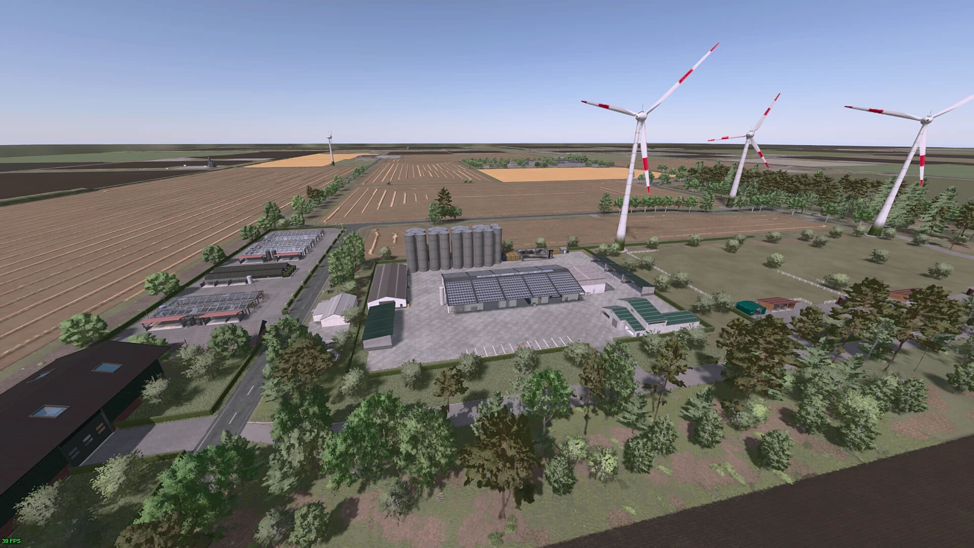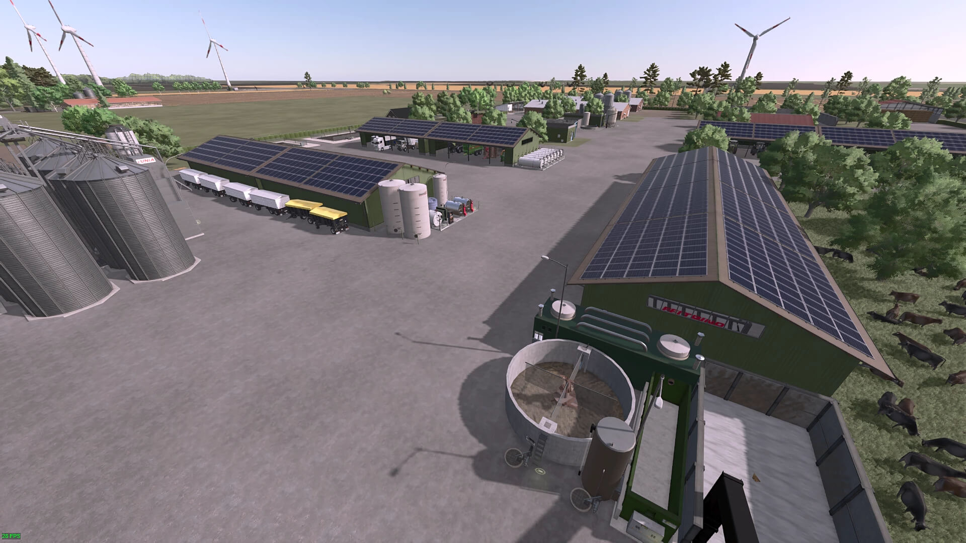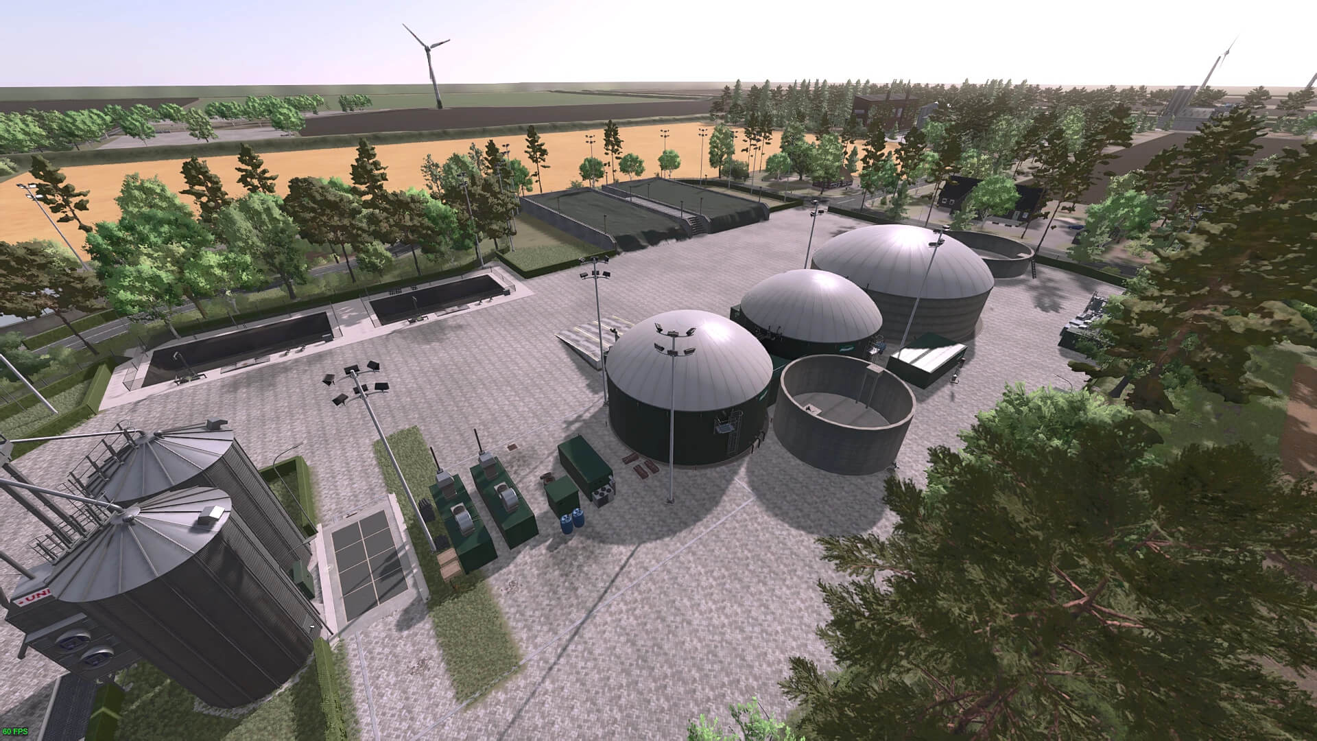 At the farm you’ll find a large silo where you can store various items like wheat, etc., as well as many halls where you can store vehicles and equipment. You’ll also find some animal areas here, such as a cowshed, a chicken coop, a pigpen, and a sheepfold. At our BGA you’ll find two large wedge silos that will already be full at the start, as well as two large 2.2 million liter manure silos.