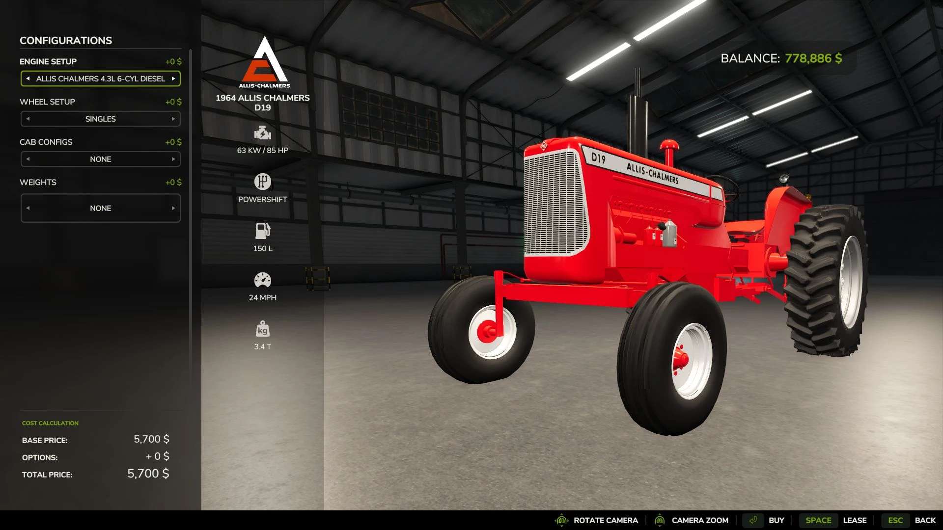 Engine: Allis-Chalmers Buda D262, 262 cubic inches (4.3 L).
