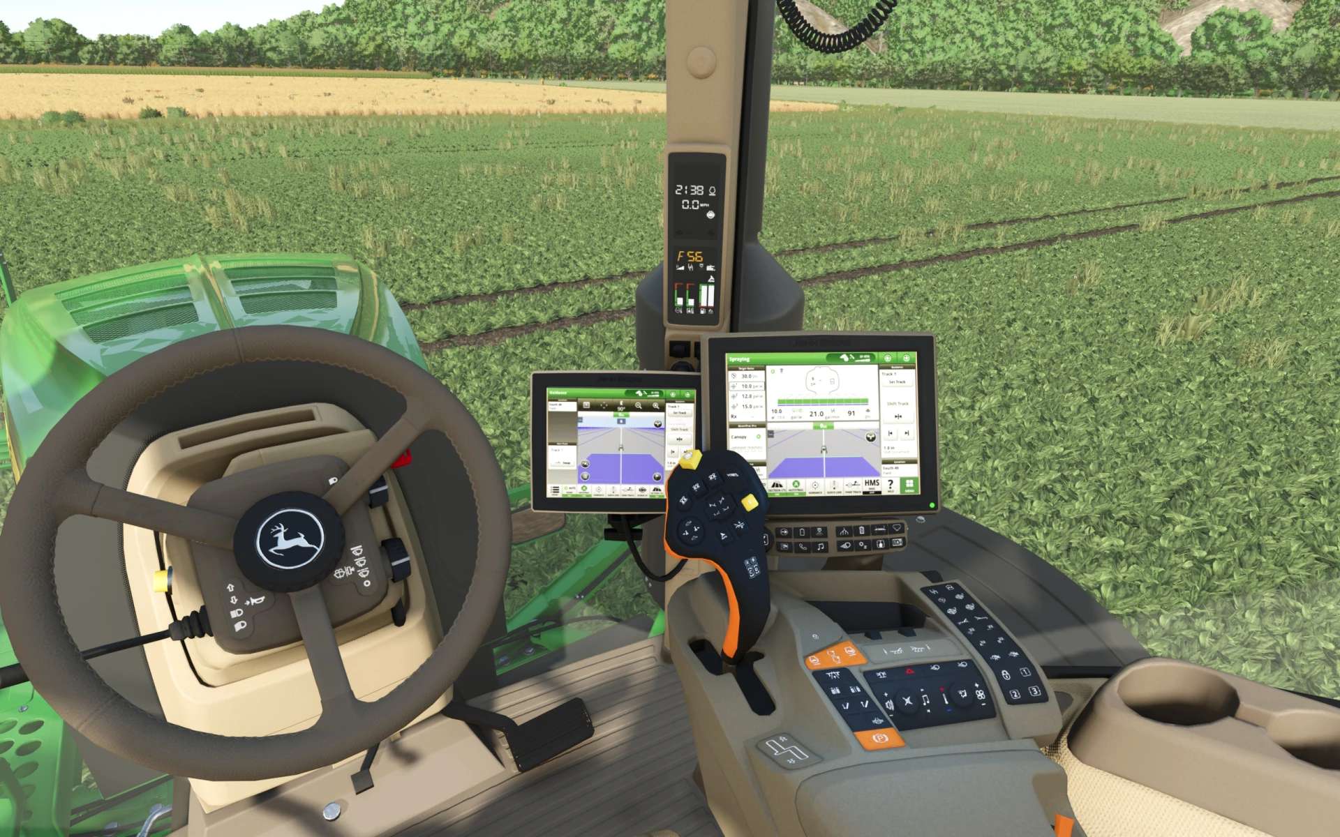 1) See and Spray and Pulse Width Modulation have been added. However, the spray nozzles spray all together rather than individually as they should. Also note that at this time there are no cameras or hardware installed on the booms for See and Spray as would be on the real machine, so only fictional functionality is intended.