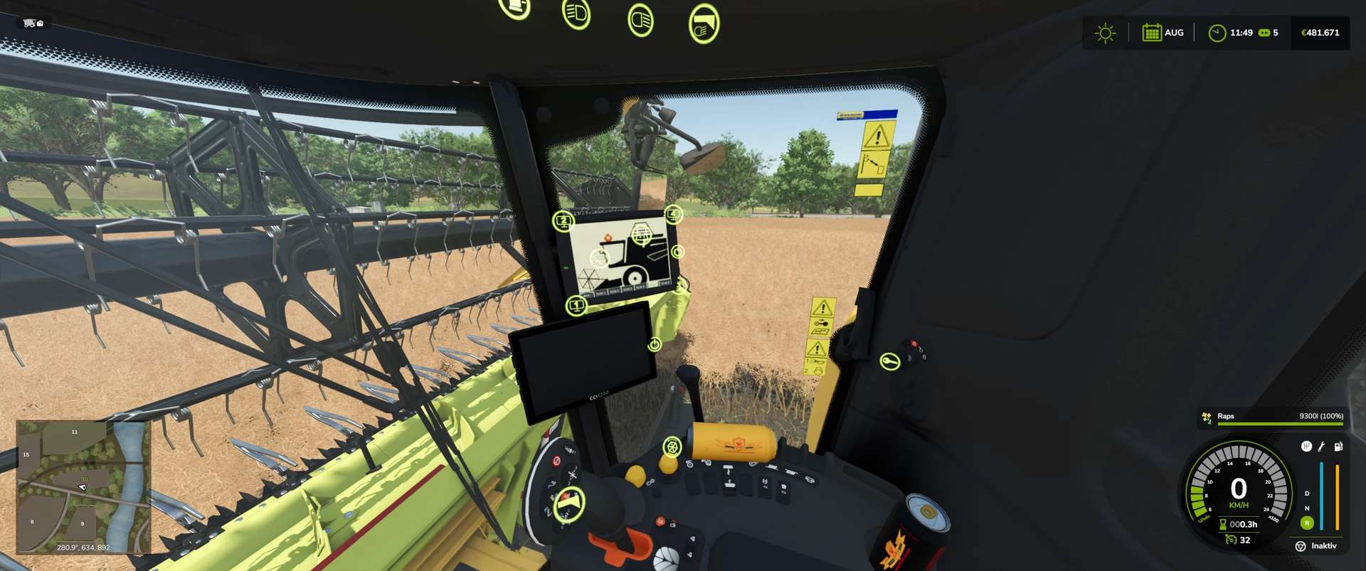 – Straw chopper/straw swath (only animation; to switch between swath and chopping, you must do this as usual in the vehicle)