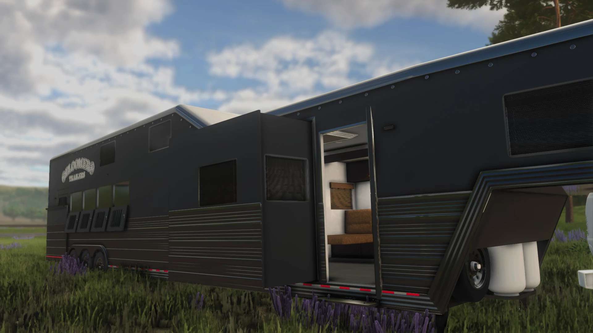 Horses: 5-horse side load with airflow dividers, drop-down windows (head & tail), stud stall, and full insulation.