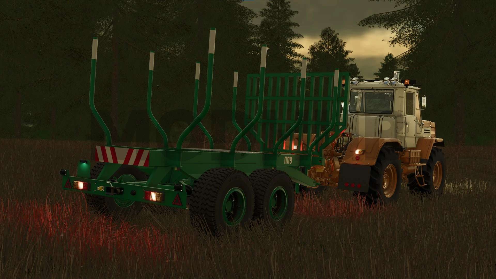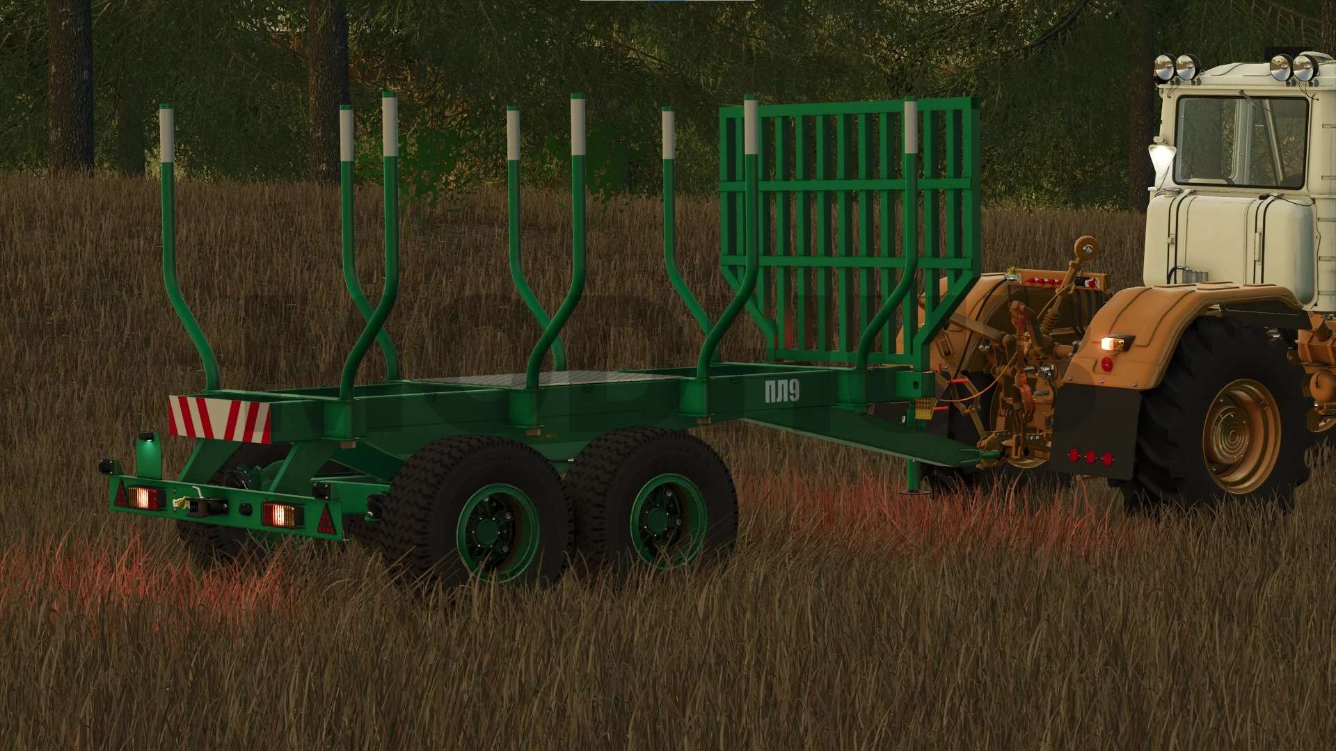 The PL-9 logging trailer is designed for collecting and exporting grades from 1 to 5 meters long to loading areas or directly to the consumer.