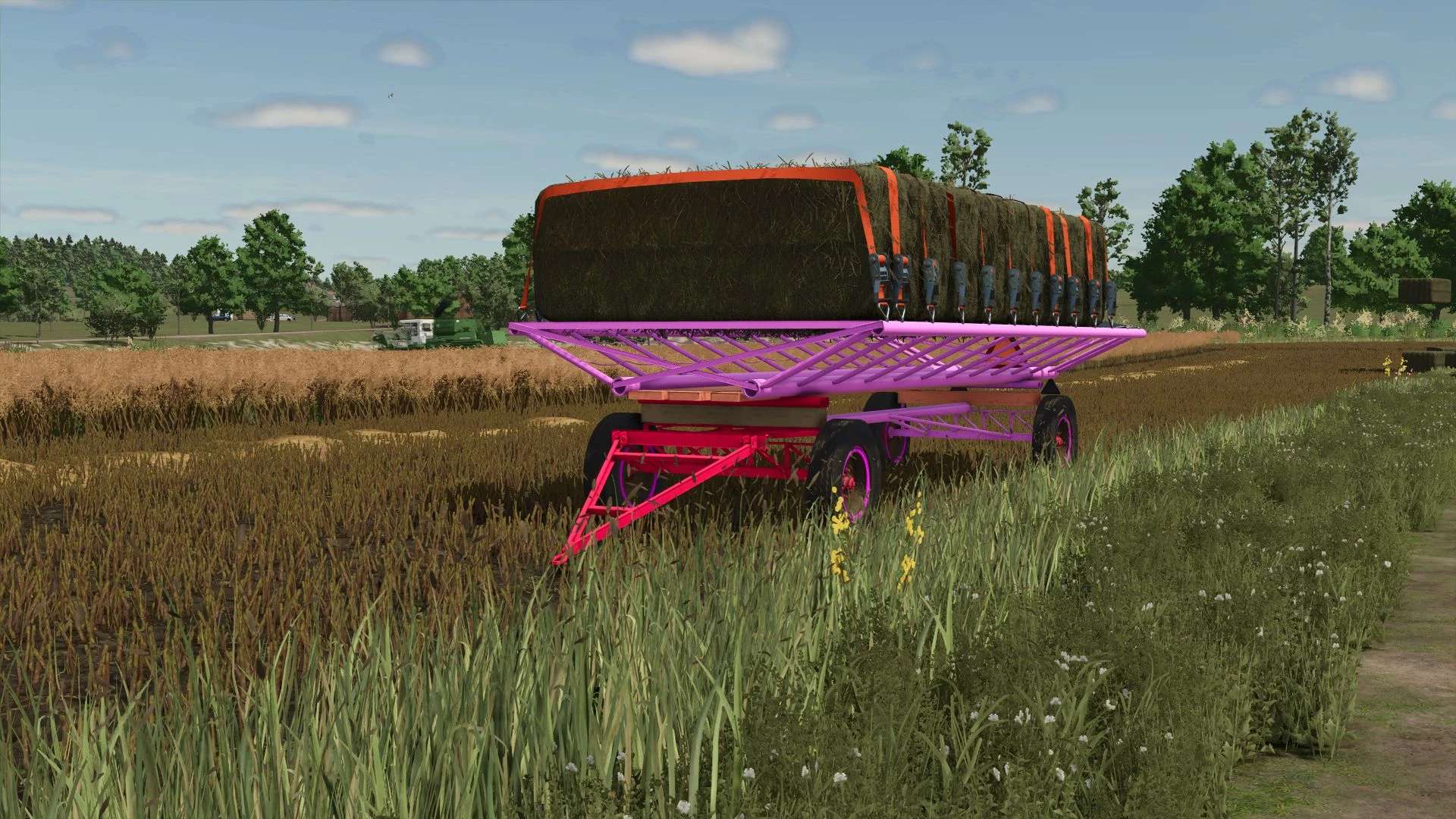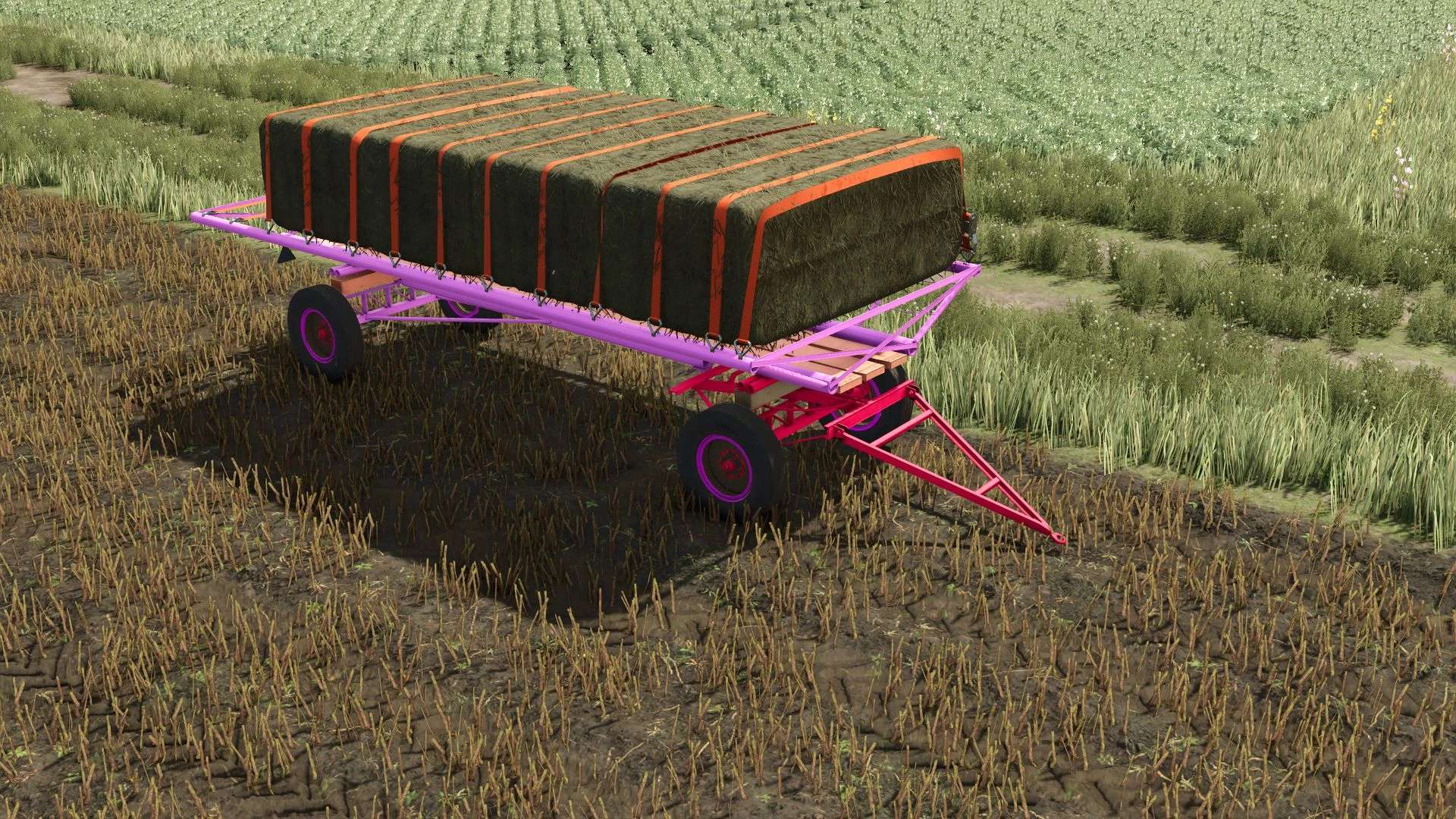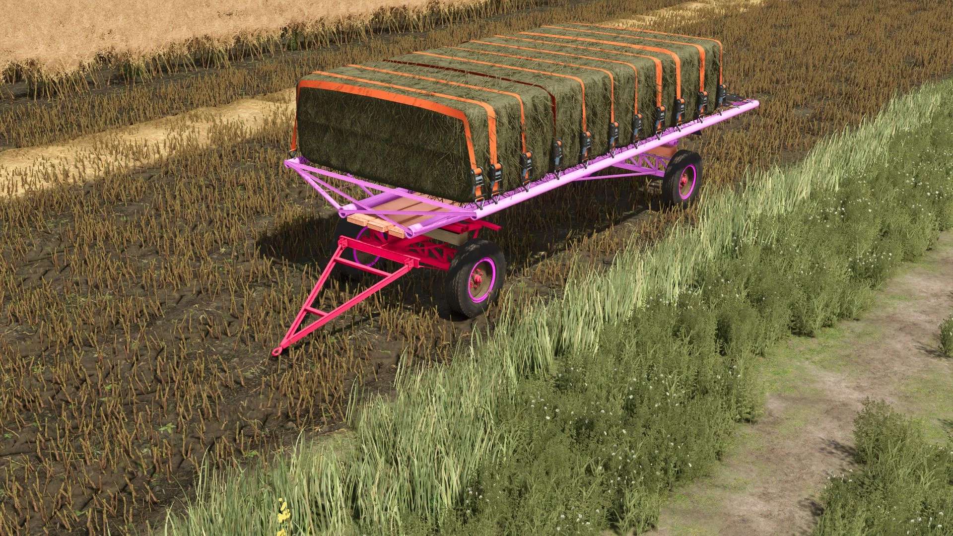A little more colorful Romanian bale trailer. It takes somewhere around 3 round bales and 4 square bales