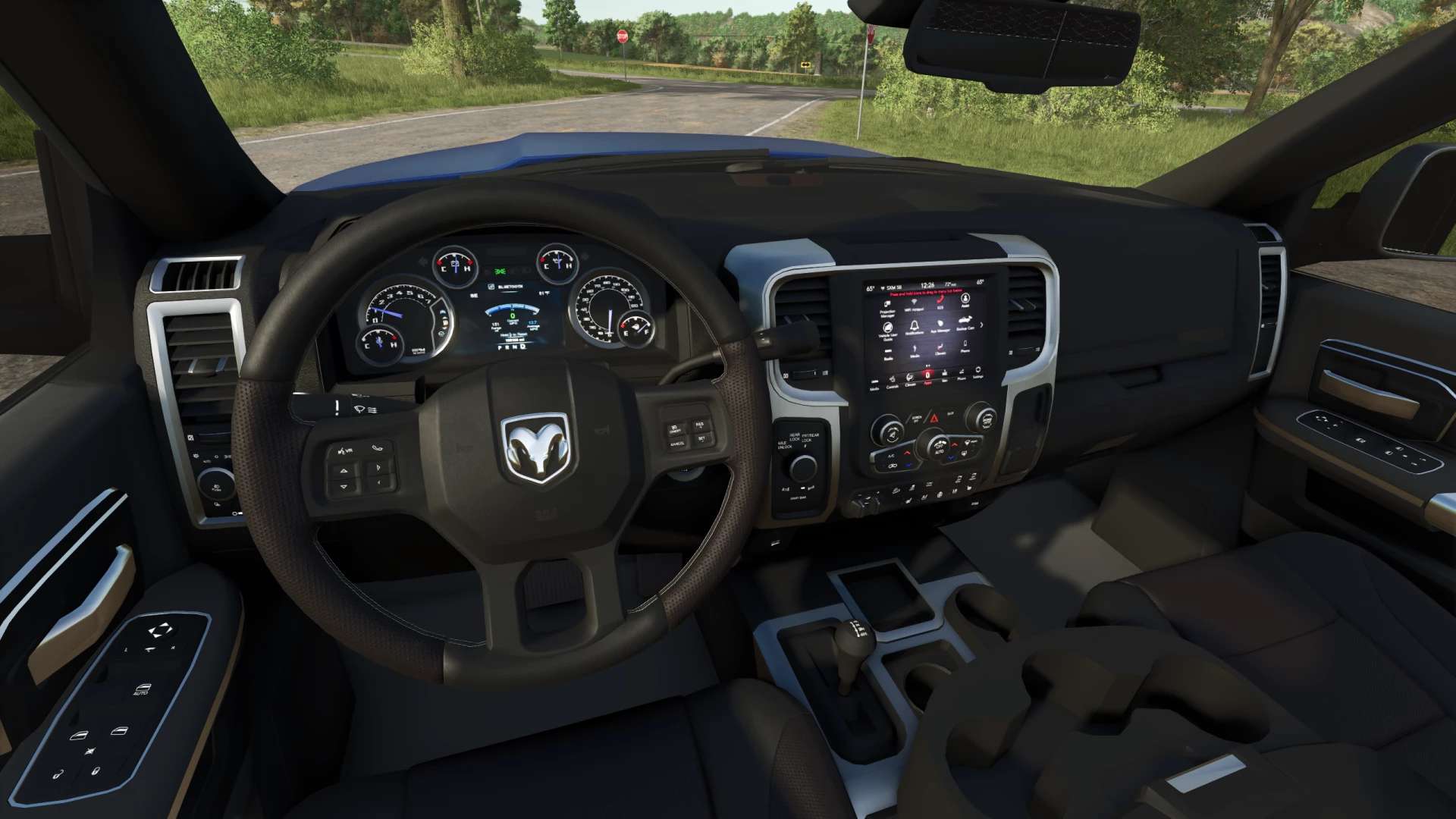 Animated turn signal switch, pedals, gear shifter, dashboard, driveshaft.