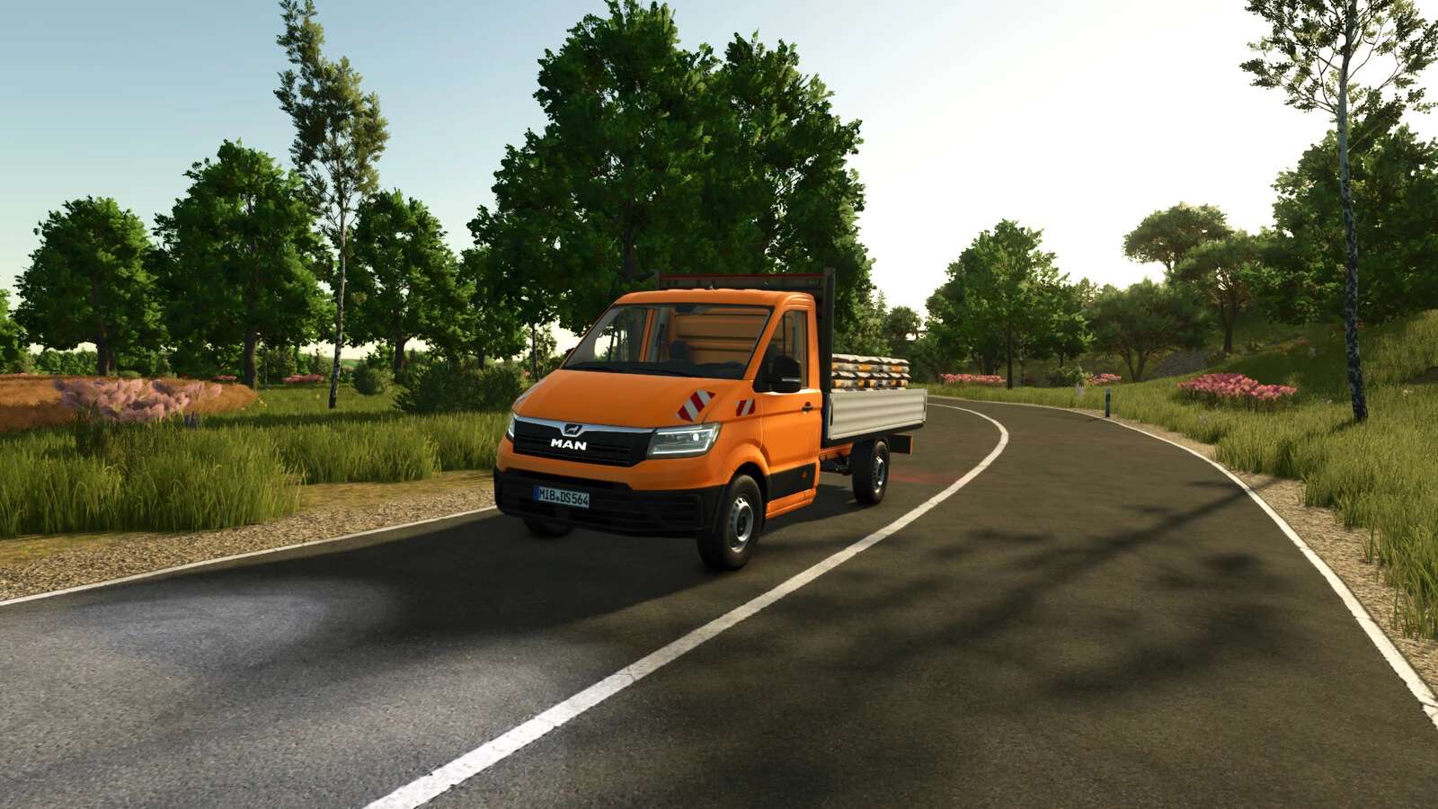 The MAN TGE flatbed is a versatile transporter for daily farm operations.